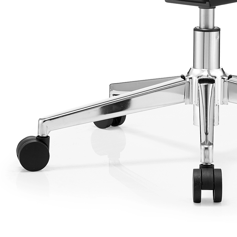 Крестовина с хромированным блеском подчёркивает современный стиль кресла и добавляет прочности. Колёсики из нейлона обеспечивают плавное перемещение по любому покрытию. Газ-лифт 3 класса гарантирует плавную регулировку по высоте и надёжную поддержку при нагрузке до 120 кг.