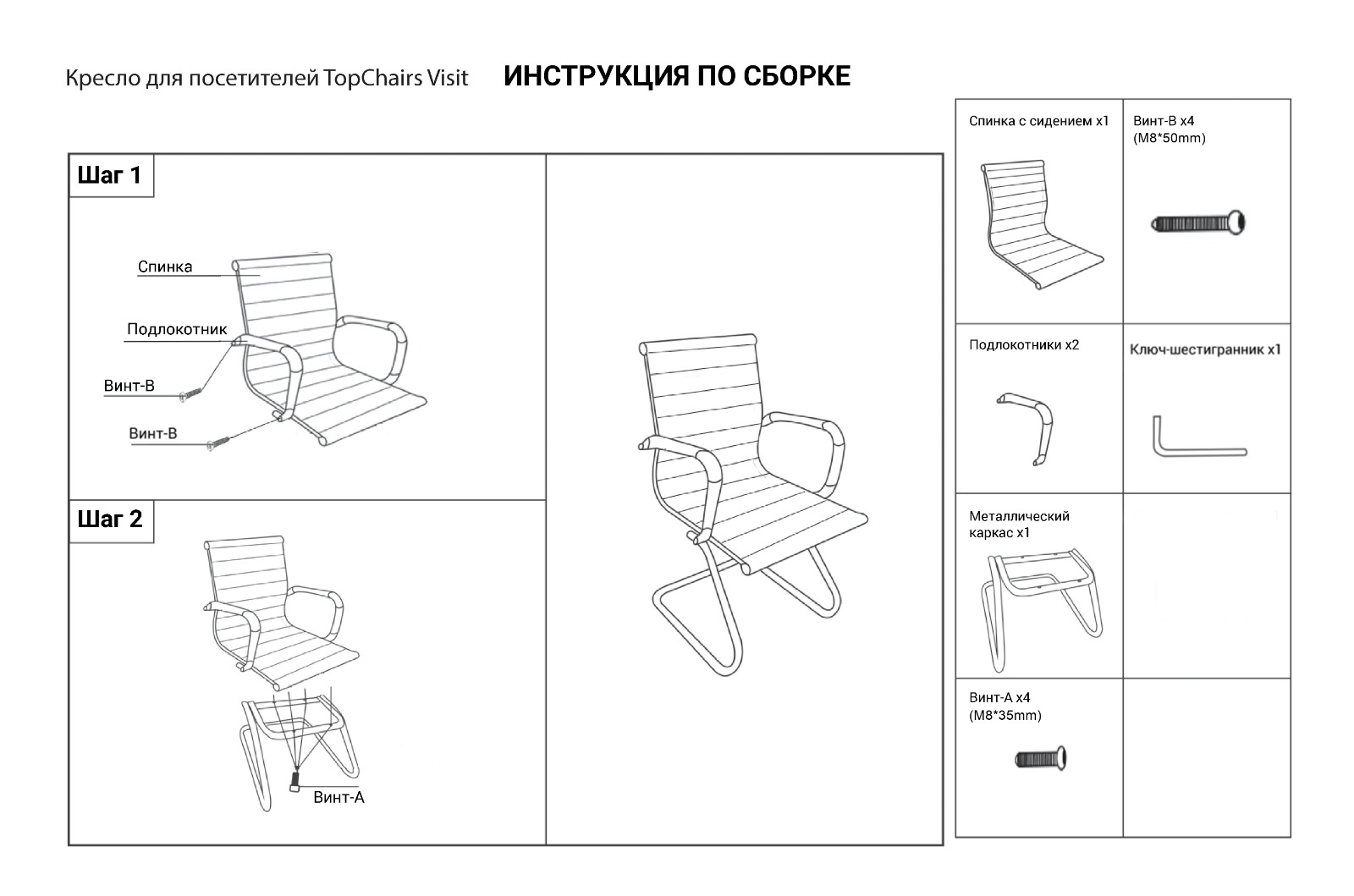 Кресло для посетителей TopChairs Visit серое 2 шт.