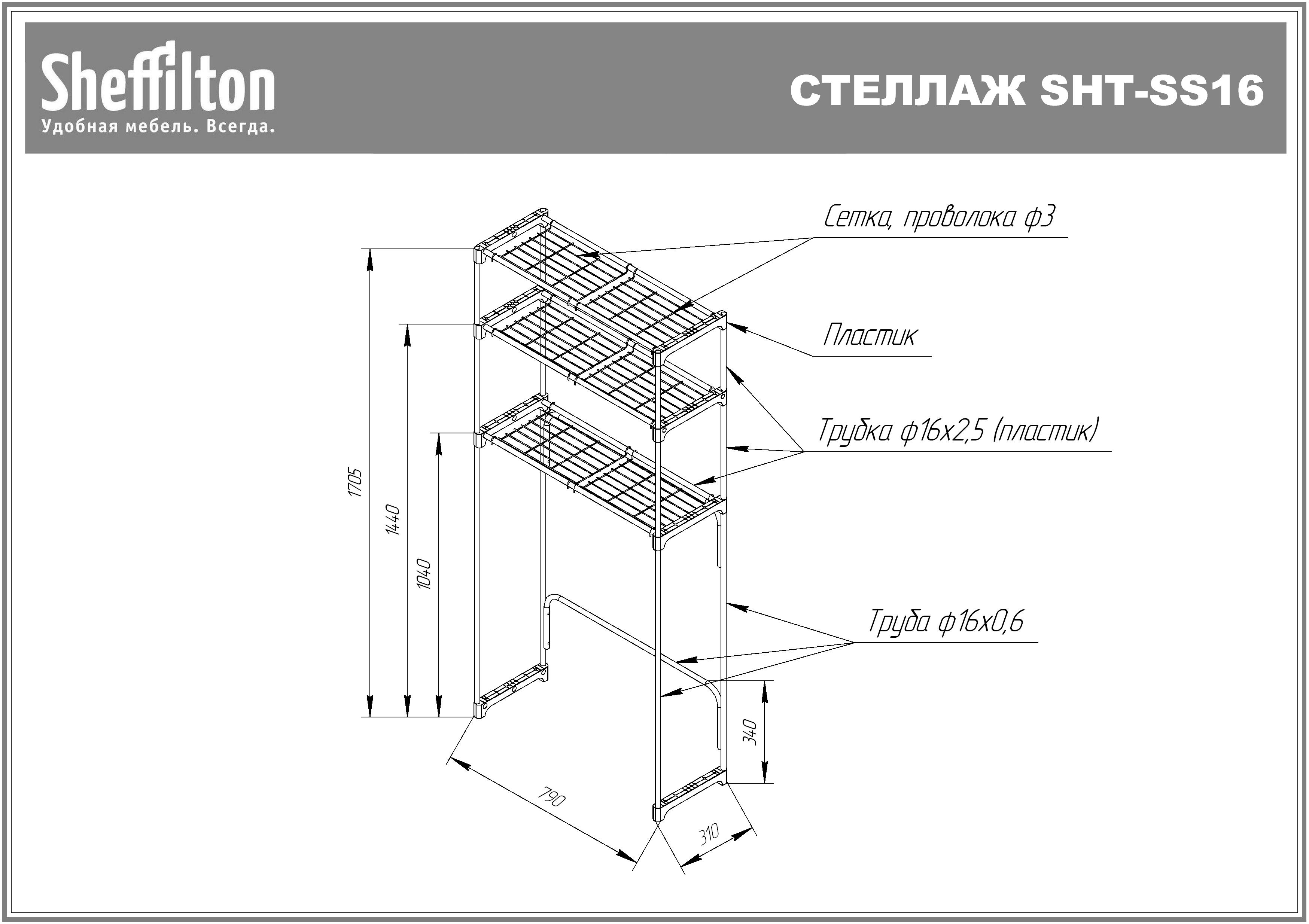 - Стеллаж выполнен из металла, диаметр/толщина трубы 16х0,6 мм. и пластиковой трубки 16х2,5мм.;