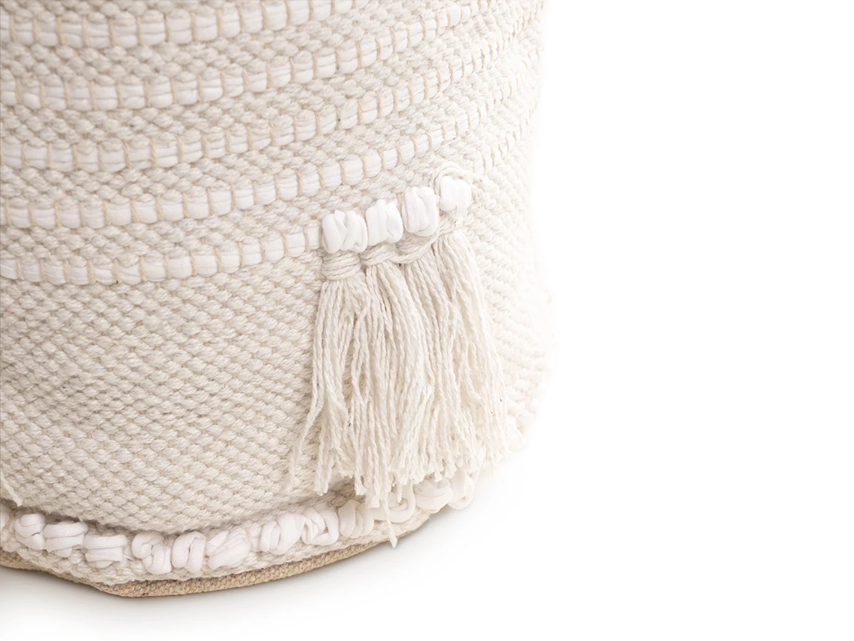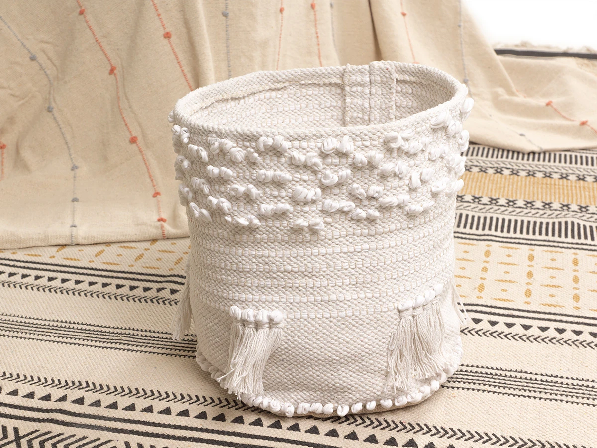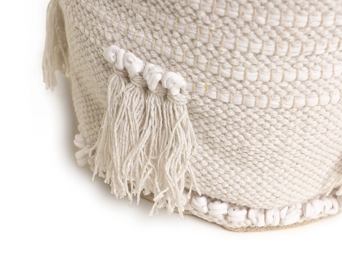 Круглая корзина из хлопка с плотными стенками и мягким дном станет функциональной и эстетичной деталью интерьера. В ней можно организовать удобное хранение косметики, игрушек, журналов, техники, материалов для рукоделия и творчества, использовать в качестве кашпо для цветов, растений, декоративных композиций. Хлопок обладает высокой прочностью и превосходными тактильными характеристиками. Корзинка украшена бахромой, рельефным геометрическим орнаментом, что делает ее оригинальной и акцентной. Плетеная корзинка с этническими мотивами добавит шарма в интерьер, сделает его более самобытным и поможет отразить вкусы его владельца. Станет теплым запоминающимся и полезным подарком, прекрасным аксессуаром, который красиво дополнит любое пространство.