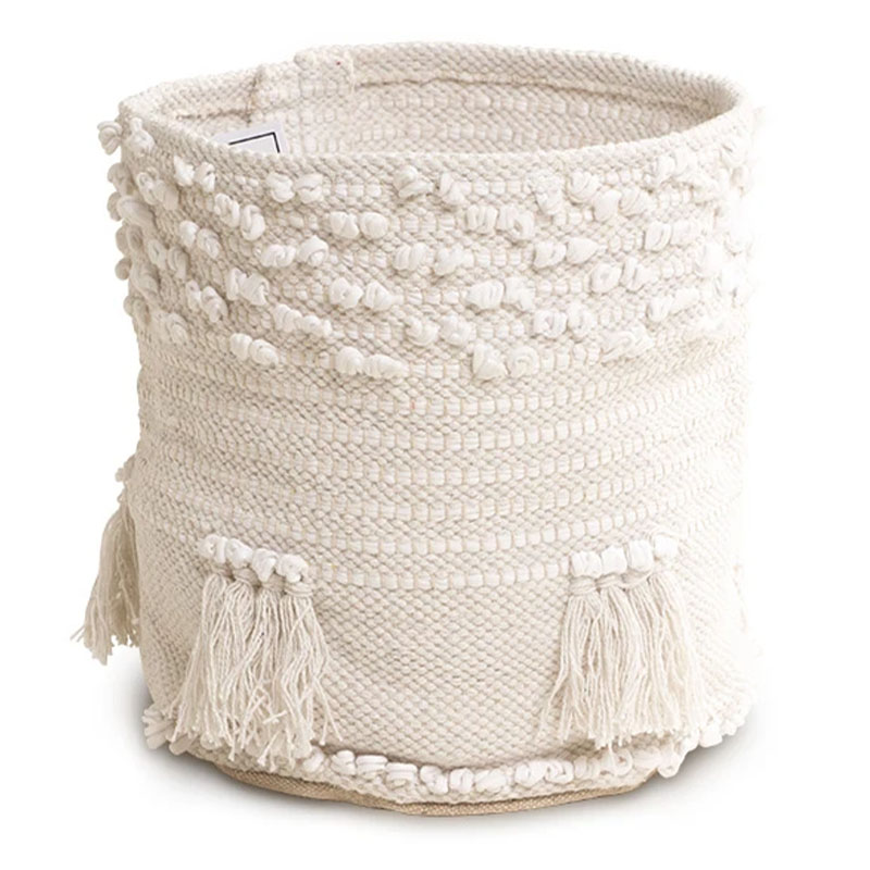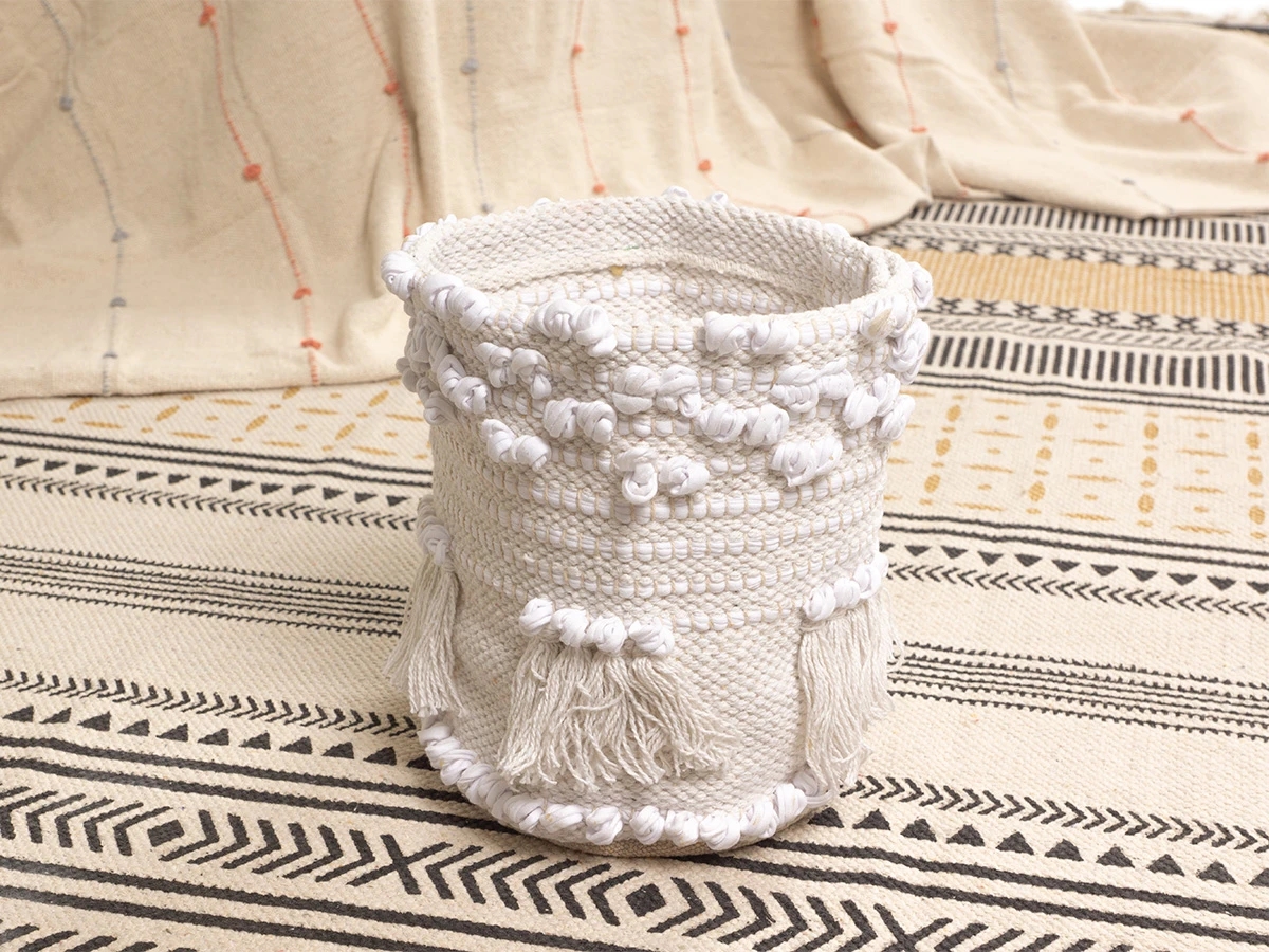 Круглая корзина из хлопка с плотными стенками и мягким дном станет функциональной и эстетичной деталью интерьера. В ней можно организовать удобное хранение косметики, игрушек, журналов, техники, материалов для рукоделия и творчества, использовать в качестве кашпо для цветов, растений, декоративных композиций. Хлопок обладает высокой прочностью и превосходными тактильными характеристиками. Корзинка украшена бахромой, рельефным геометрическим орнаментом, что делает ее оригинальной и акцентной. Плетеная корзинка с этническими мотивами добавит шарма в интерьер, сделает его более самобытным и поможет отразить вкусы его владельца. Станет теплым запоминающимся и полезным подарком, прекрасным аксессуаром, который красиво дополнит любое пространство.