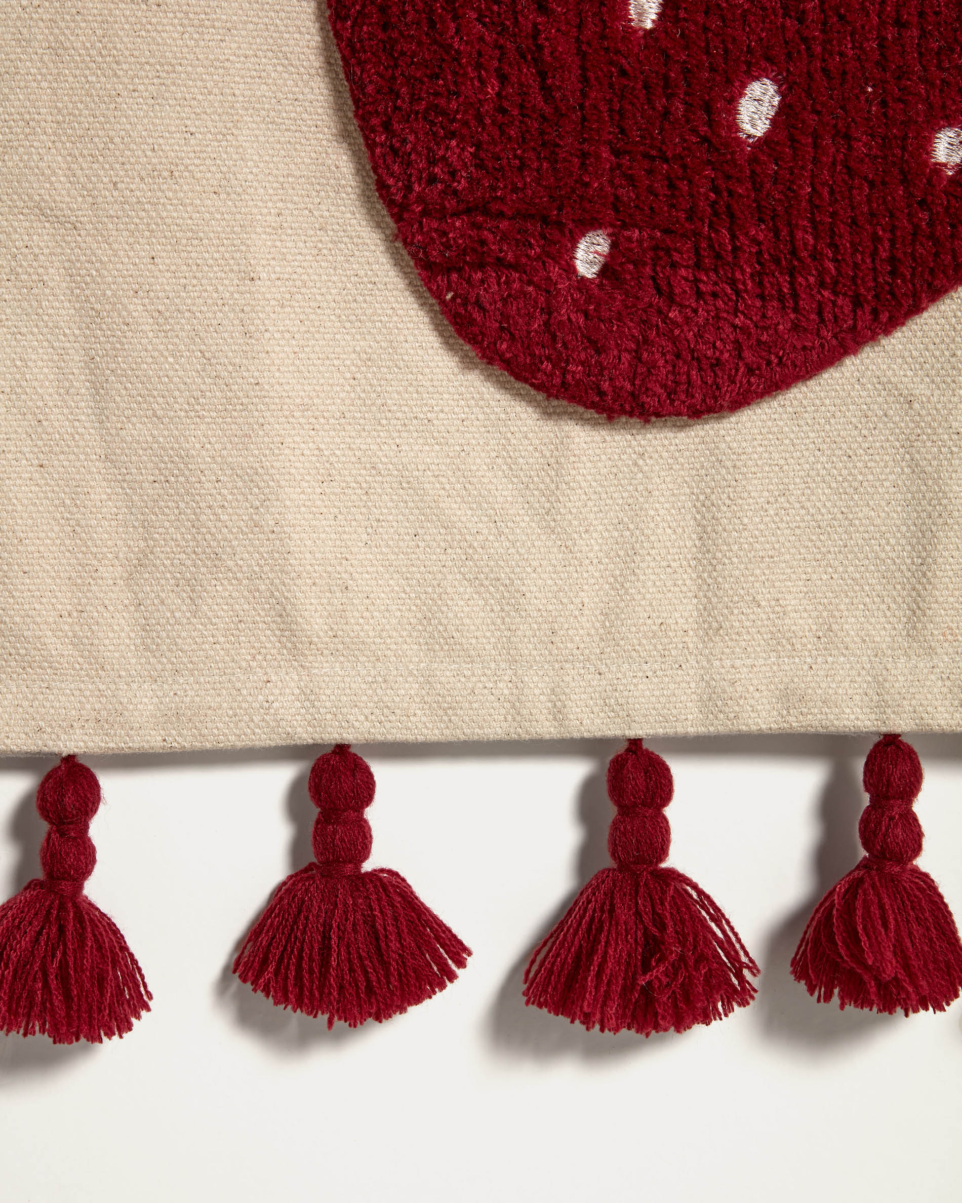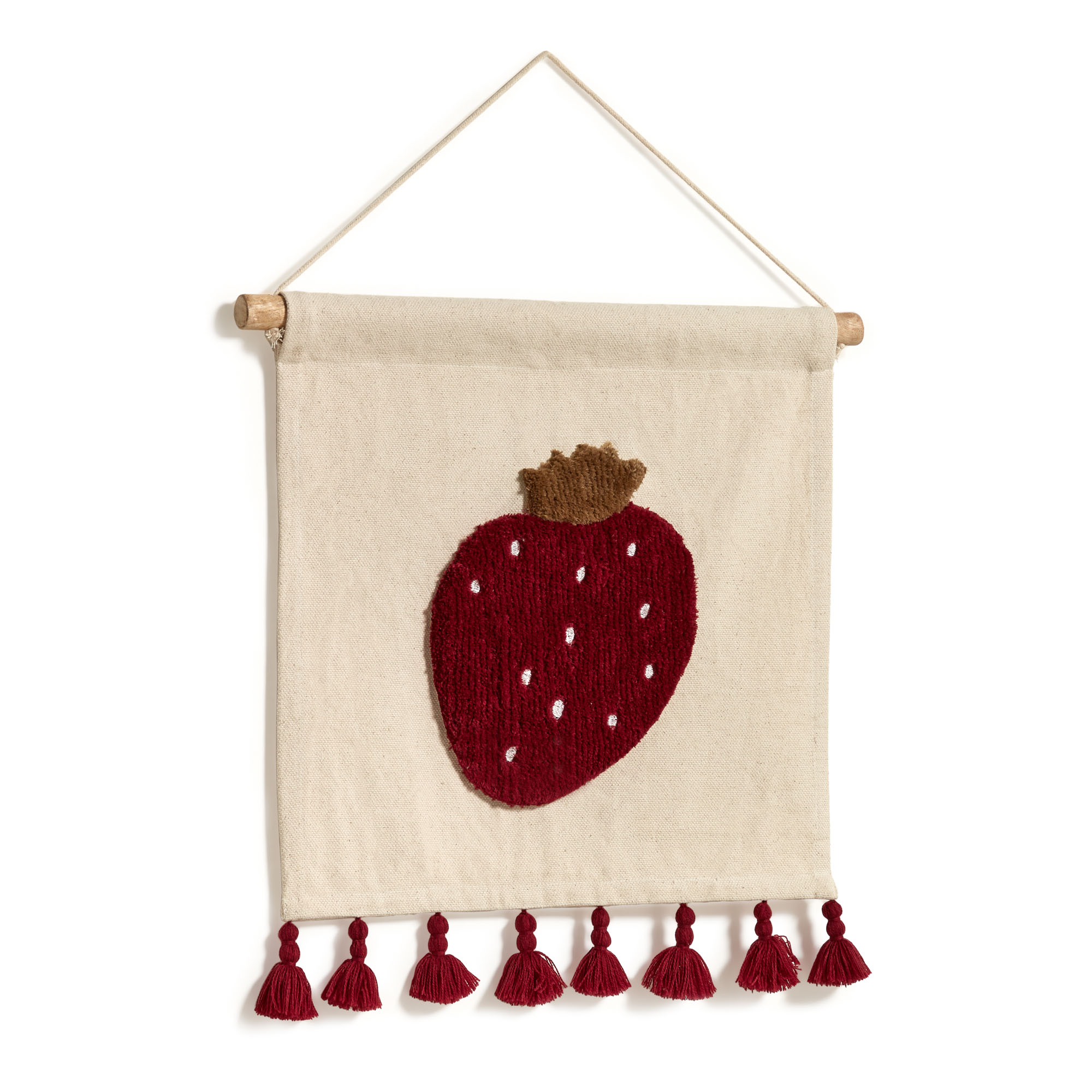 Amarantha Гобелен из 100% хлопка с красной клубникой и кисточками белого цвета 40 x 40 см
