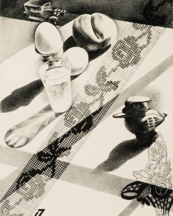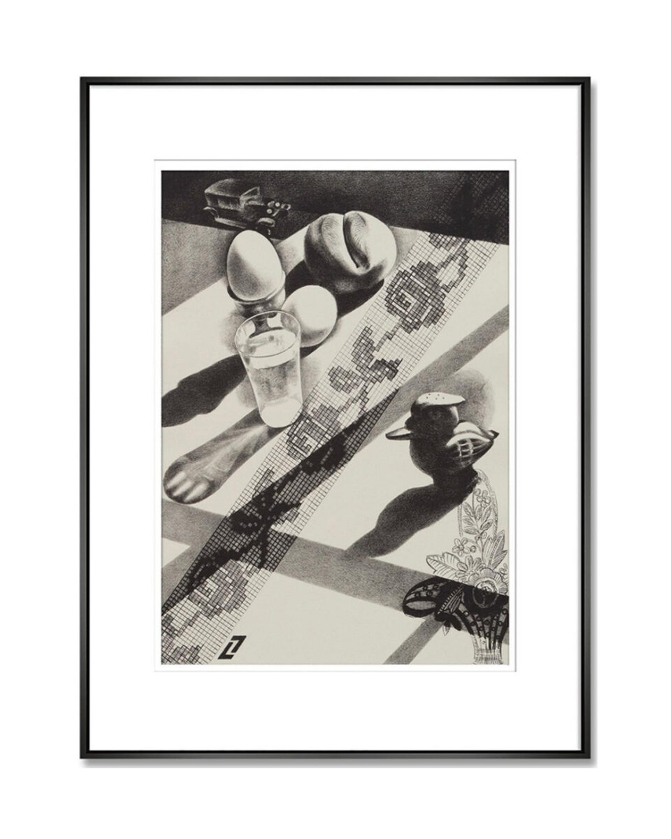 Запросить индивидуальное предложениеИнтерьерный постер “Breakfast” – это репродукция одной из картины Луи Лозовика, которая является синтезом различных стилей раннего модерна: кубизма, прецизионизма и даже сюрреализма. “Breakfast” – это высший пример таланта Лозовика в области тональной литографии. Картина “Breakfast” изображает различные предметы, связанные с завтраком, такие как два яйца, булочка и стакан с прозрачной жидкостью. Они расставлены на сильно наклоненной столешнице, создавая необычную и динамичную композицию. По диагонали композиции проходит лента ткани, которая выглядит как узор для вышитой каймы. Можно предположить, что это рисунок на скатерти, и хотя она выходит за край стола, создает иллюзию глубины и движения. На картине также присутствуют другие интересные детали, такие как игрушечный цыпленок и стилизованный цветочный узор, прорастающий из корзины. Они добавляют элементы игры и природы в композицию, создавая интересный контраст с жестким геометрическим рисунком и растительным орнаментом. Глубокие тени, брошенные объектами, создают дополнительную глубину и объем, контрастируя с плоскими геометрическими и растительными элементами. Этот контраст придает картине особую энергию и динамику. Интерьерный постер “Breakfast” – это не только потрясающий художественный объект, но и отличное дополнение к любому интерьеру. Его яркие цвета, необычная композиция и уникальная комбинация стилей сделают его прекрасным украшением для гостиной, спальни или офиса. Он подойдет как для современного, так и для классического интерьера, придавая ему особый стиль и характер.
