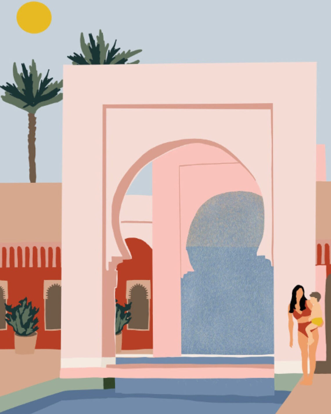 Запросить индивидуальное предложениеИнтерьерное жикле “Mom Son” – это яркая и запоминающаяся иллюстрация в “бохо” стиле, на которой изображена женщина с сыном на фоне марокканской арки. Жикле имеет экзотическую цветовую гамму, которая включает в себя яркие розовые тона, контрастирующие с прохладным голубым и нейтральными пастельными оттенками. Такое сочетание цветов придает постеру живость и визуальную энергию, привлекая к себе взгляды и создавая особую атмосферу в помещении. Благодаря универсальному дизайну этого жикле, он легко впишется в любой стиль интерьера.