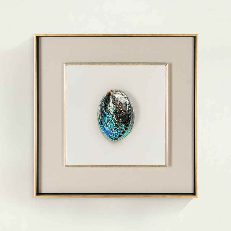 Запросить индивидуальное предложениеРаковина морского ушка, являющаяся центральным элементом композиции, поражает своей неповторимой красотой. Переливающиеся оттенки синего, зеленого, фиолетового и золотого создают завораживающую игру света. Природный перламутр, покрывающий внешнюю поверхность раковины, придает ей особый блеск и сияние. Размер раковины составляет приблизительно 7 см в длину и 5 см в ширину, что позволяет ей гармонично смотреться на фоне паспарту. Раковина аккуратно закреплена на белом паспарту. Нейтральный белый цвет подчеркивает яркость и насыщенность цветов раковины, делая ее еще более выразительной. Паспарту, в свою очередь, обрамлено тонкой рамкой светло-серебряного цвета, которая добавляет композиции глубины и изысканности. Благодаря своему лаконичному дизайну, панно легко впишется в любой интерьер, будь то современный минимализм, классический стиль или морская тематика. Панно с раковиной морского ушка — это не просто декоративный элемент, это настоящее произведение искусства, созданное самой природой. Оно станет прекрасным подарком для ценителей красоты и оригинальности, а также для тех, кто хочет добавить в свой дом нотку морской романтики и утонченности.