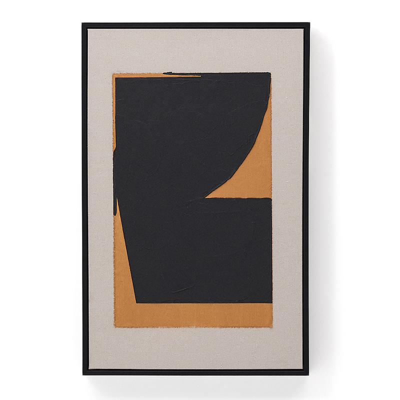 Zernu Абстрактная картина на оранжево-чёрном льняном холсте, 42 x 65 см