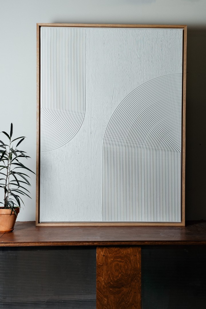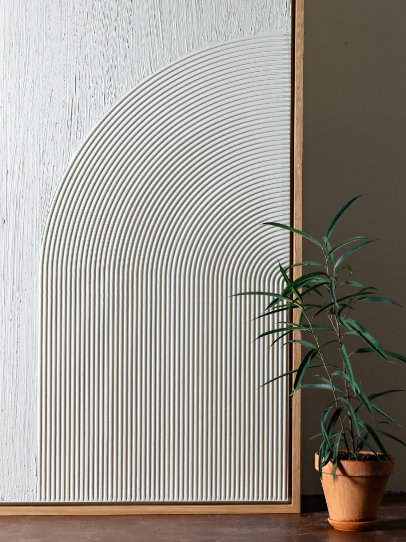 Запросить индивидуальное предложениеЭто изысканное абстрактное панно ручной работы, выполненное из массива дуба в ослепительно белых оттенках, станет идеальным дополнением современного интерьера. Панно обладает уникальной текстурой и впечатляющей глубиной. Художник искусно вырезал сложные узоры и линии, создавая динамичную и гармоничную композицию, подчеркивая взаимодействие света и тени на его поверхности.