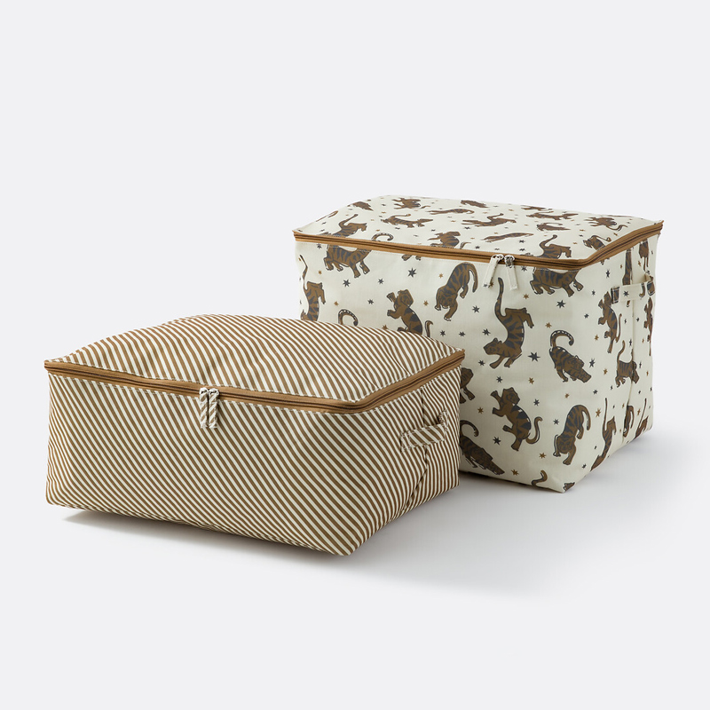 • Комплект из двух чехлов: один в полоску и один с принтом "тигрята"