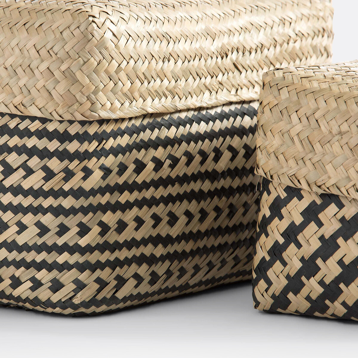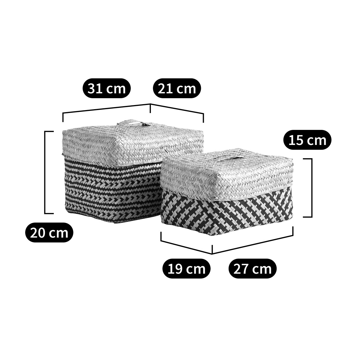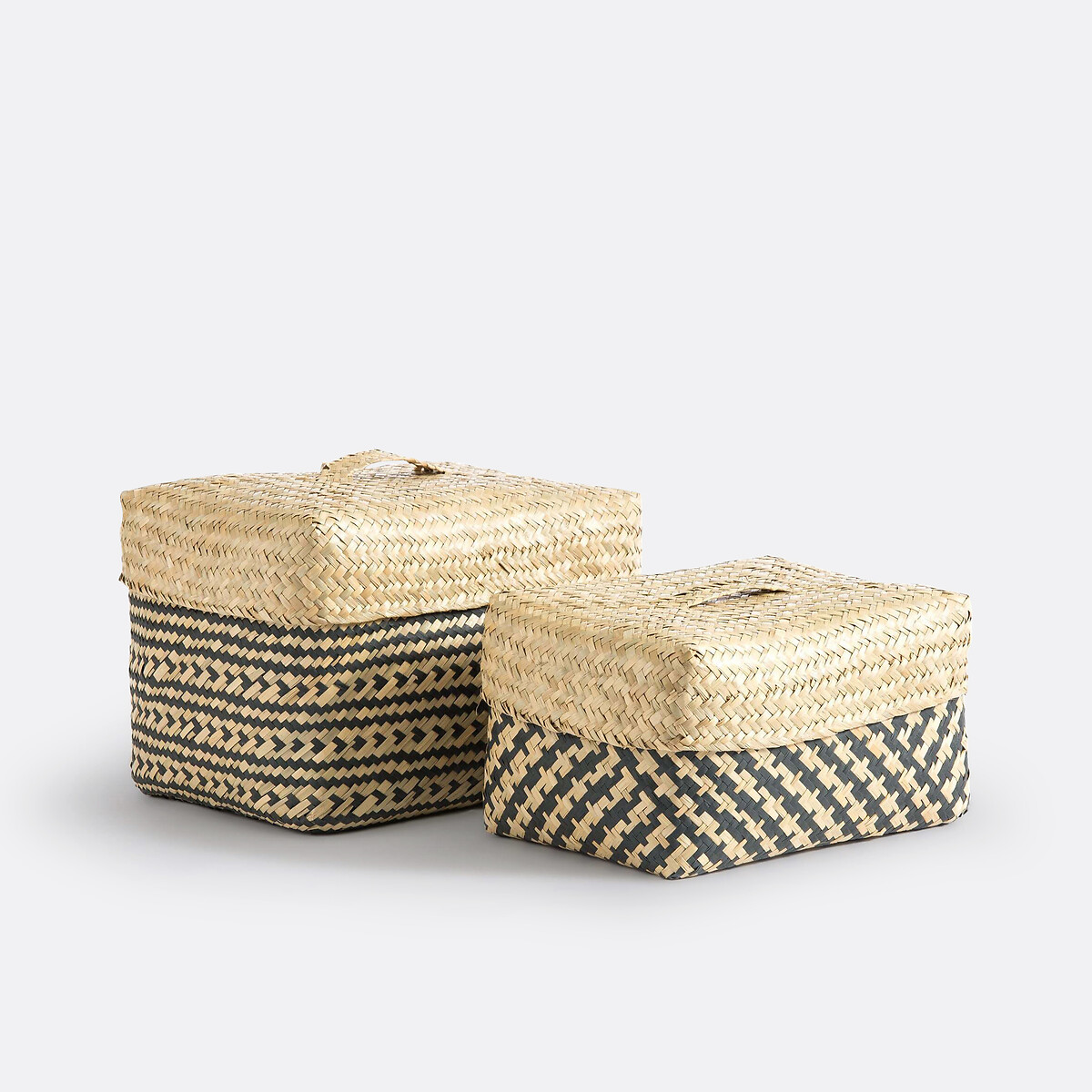 Запросить индивидуальное предложение2 корзины из гербария Kotak. Декоративный стиль, плетение из гербария и контрастная крышка, эти 2 корзины будут актуальны в шкафу или на полке.