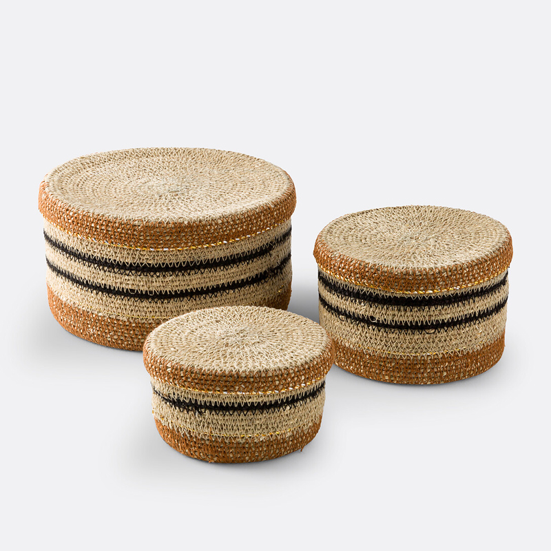 • Корзины с яркими полосками, с крышками