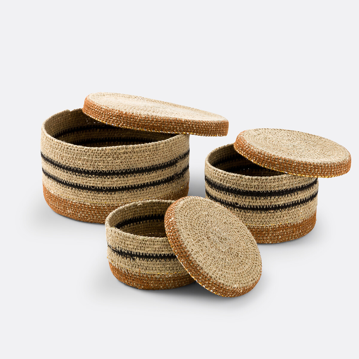 Комплект из трех корзинок с крышкой Saski единый размер каштановый