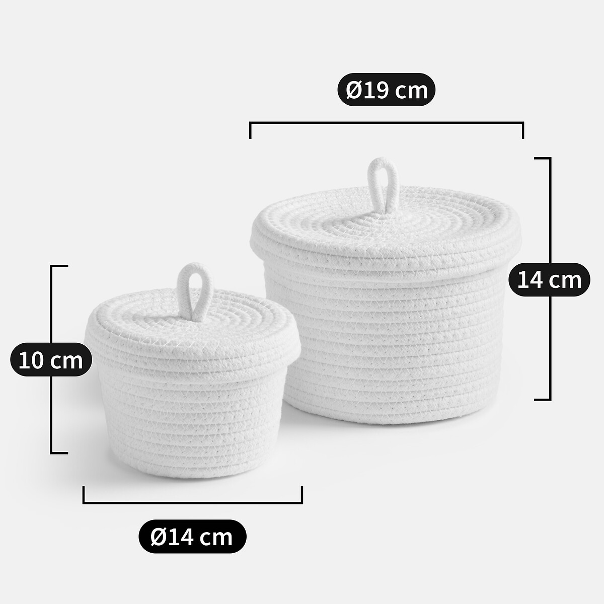 Комплект из двух корзин из хлопка с крышкой Kesia единый размер белый