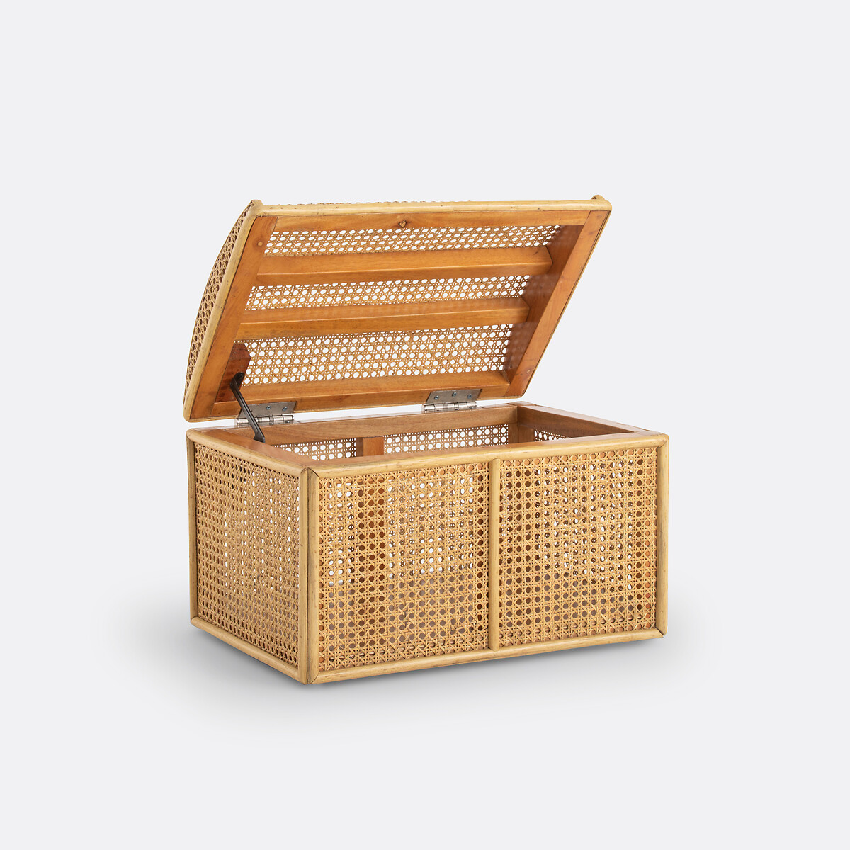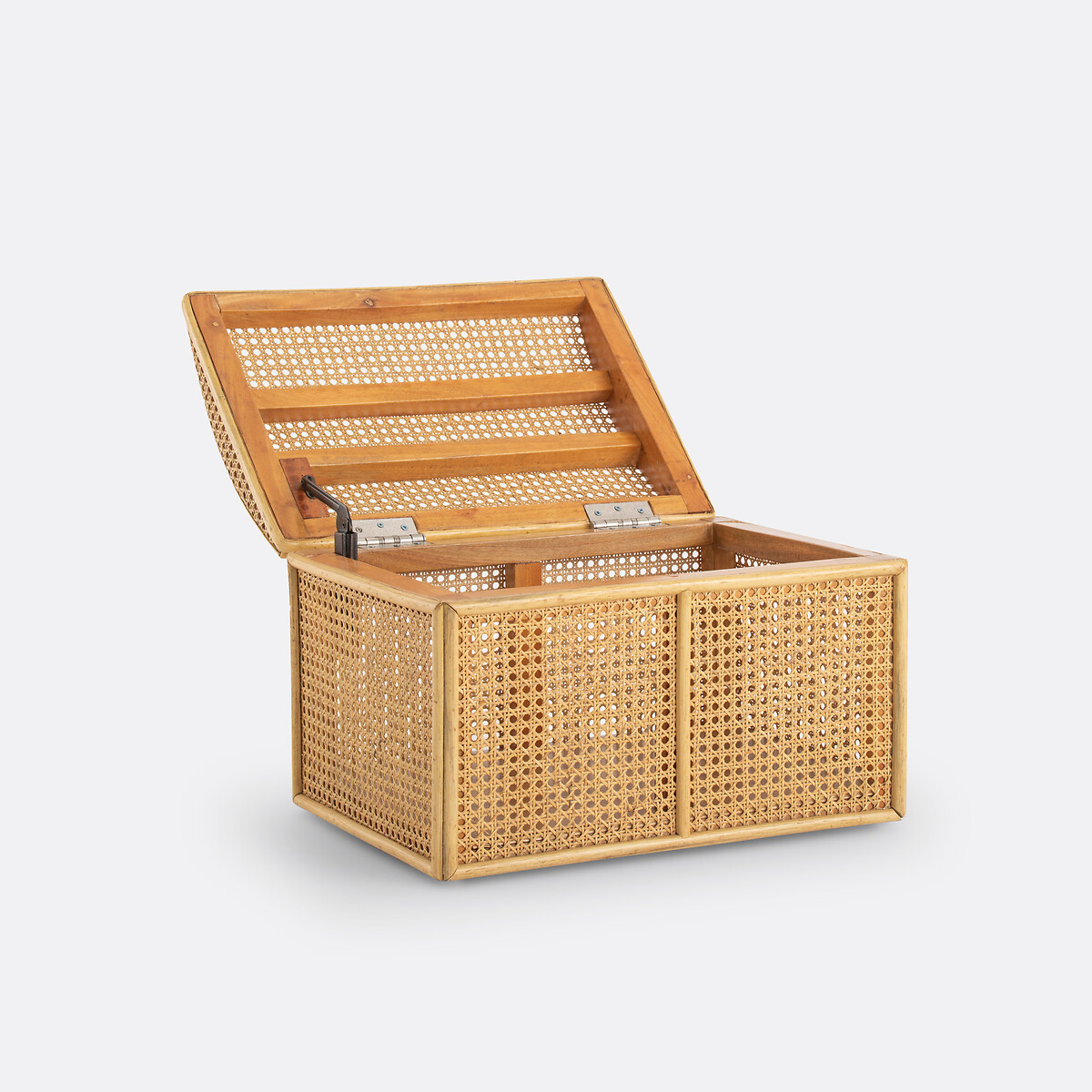 • Сундук из красного дерева, покрытый натуральным плетеным материалом • 1 тормозящая распорка для крышки