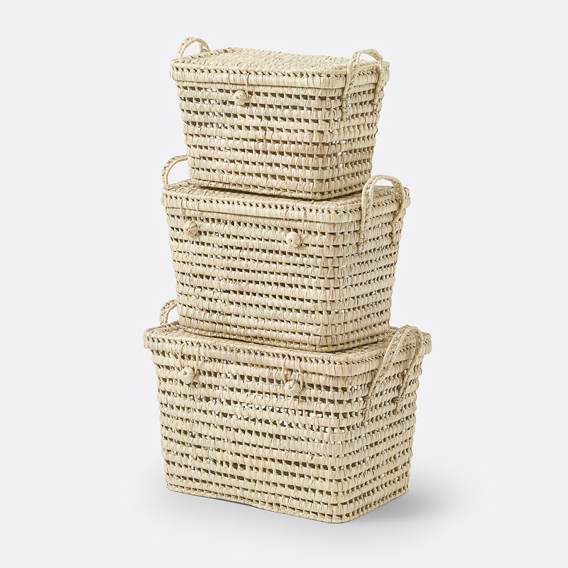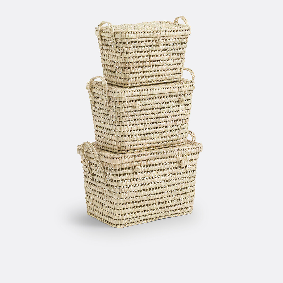Набор из трех корзин из пальмовых листьев Ghada единый размер бежевый