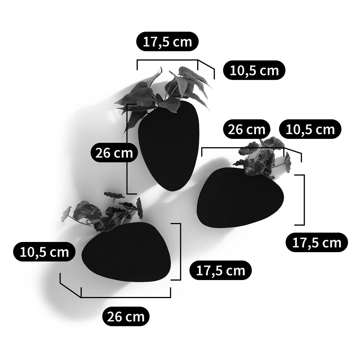 Комплект из 3 кашпо настенных из металла Pavo единый размер черный
