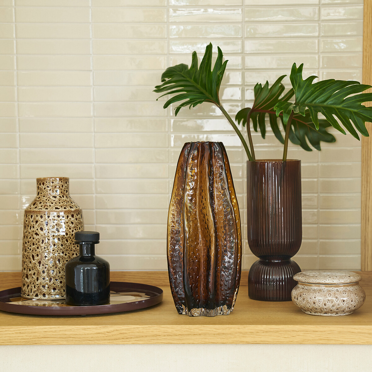 Ваза из янтарного рифленого стекла В295 см Yuvo единый размер каштановый