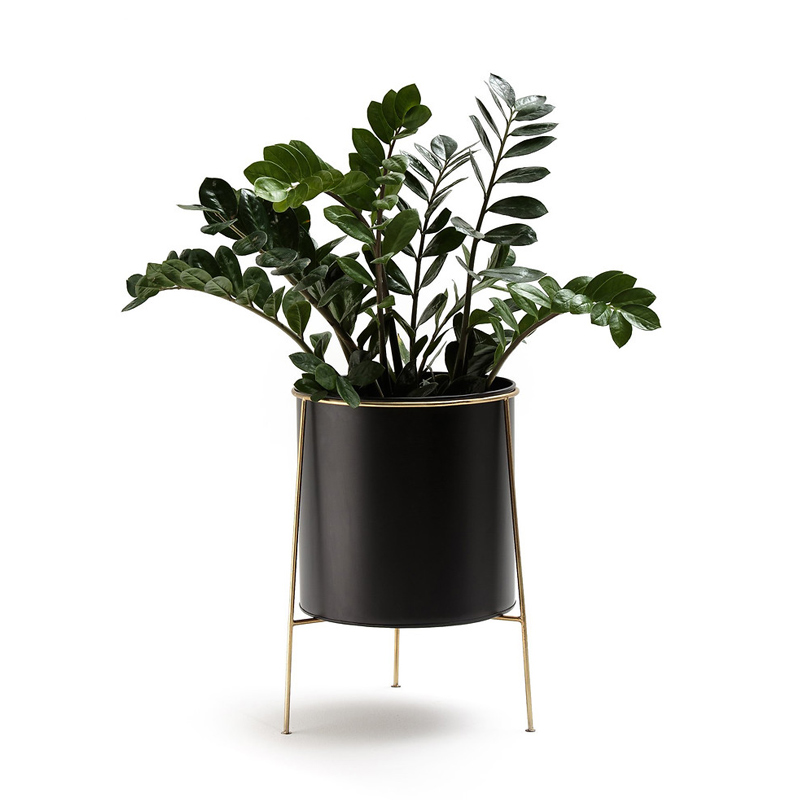 Кашпо INAYA на металлической стойке выполнено из окрашенного металла, ножки имеют латунное покрытие.