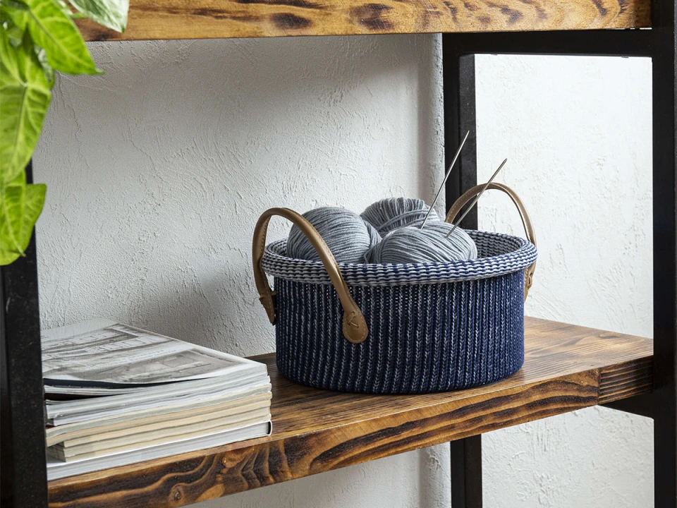 Запросить индивидуальное предложениеКорзина TODI круглая, низкая, плетеная, текстильная, с ручкой, синяя, высота 13 см.