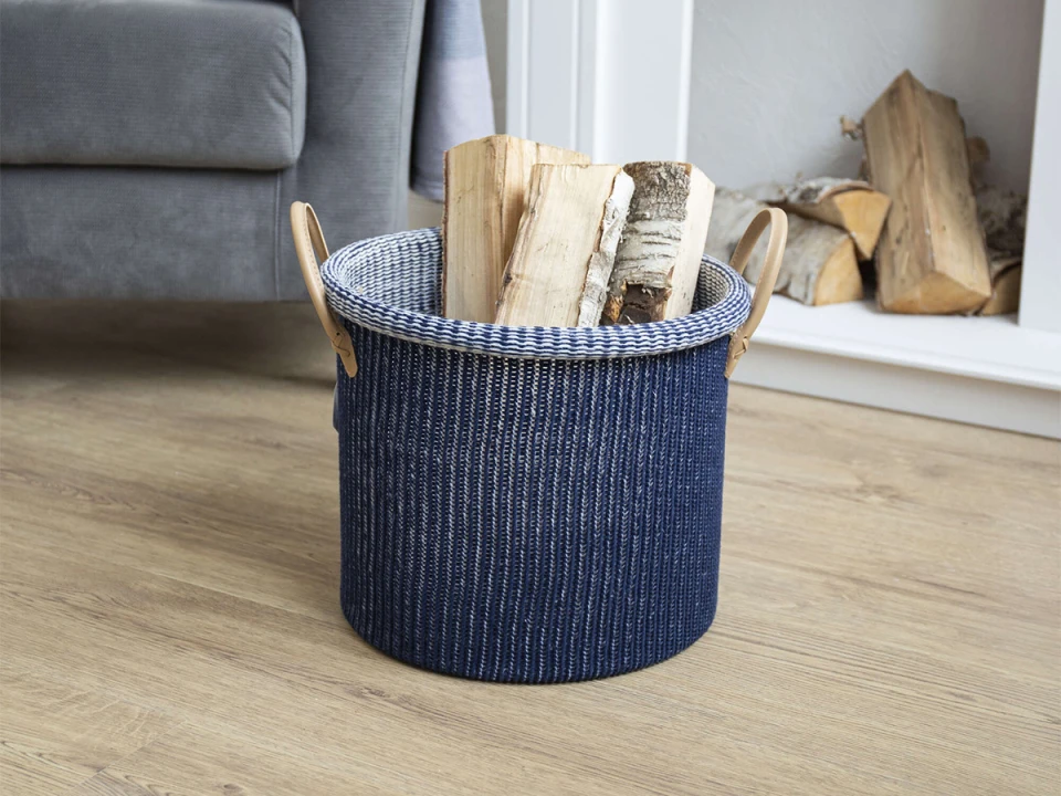 Запросить индивидуальное предложениеКорзина TODI круглая плетеная, текстильная, с ручкой, синяя.