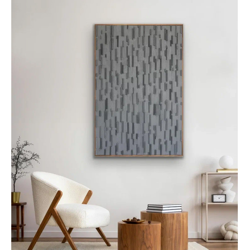 Идея: Эта картина олицетворяет собой крупный мегаполис, который состоит из небольших частей. Но каждая часть и деталь имеет значение. Каждая важна. Стремительная скорость, сила и мощь - это темы, которые движут композицией. Глядя на эту работу можно уловить суть городской жизни, и динамичную энергию шумного города. Направляющие ткани передают движение и жизненную силу, а используемые цвета символизируют энергичность и амбиции его жителей. От высоких небоскребов до извилистых улиц - картина изображает разнообразные элементы, составляющие мегаполис, подчеркивая взаимосвязанность и взаимозависимость его различных частей. Это служит мощным напоминанием о том, что ежесекундно каждый человек вносит свой вклад в коллективную силу и прогресс города. Выделенные элементы вызывают ассоциации света, который горит в квартирах вечером