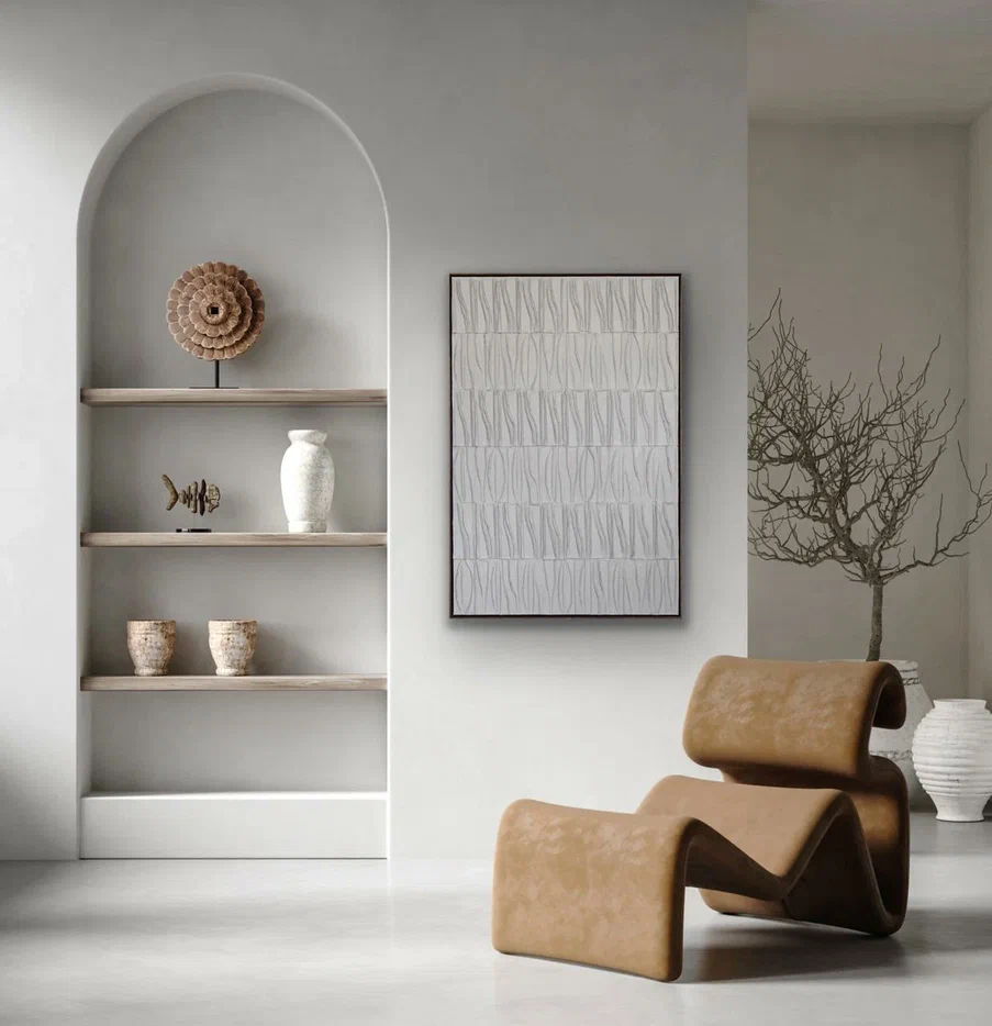 Идея: Данная картина для меня олицетворяет собой танец и активное движение. Направление и ритм задают линии, которые, то соединяются, то расходятся между собой. Цветовая гамма данной картины позволит разместить её в любом помещении, будь то монохромный интерьер или же наоборот. Деликатный цвет позволит гармонично вписать в интерьер, но активные элементы будут привлекать внимание и пробуждать интерес