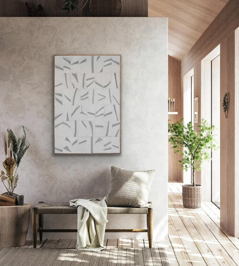 Идея: Эта картина плавно интегрирует наружные элементы городского стиля во внутреннее пространство, создавая визуальную иллюзию увеличенного простора. Используемые оттенки делают изделие универсальным: оно либо выделяется в качестве фокуса, либо гармонично сочетается с окружающем интерьером.