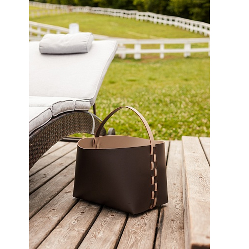 Запросить индивидуальное предложениеВодостойкие свойства кожи позволяют использовать эту корзину даже на улице, в сауне, СПА и бассейне. Рекомендации по уходу: