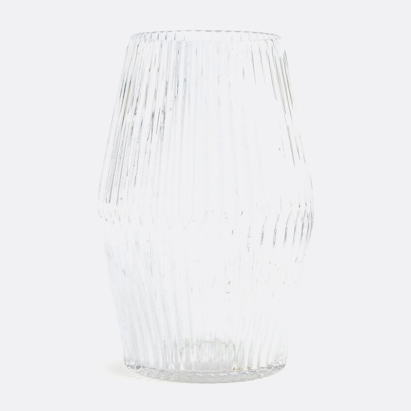 Симпатичная оригинальная форма из стекла с канавками, которая подчеркнет ваши самые красивые букеты.