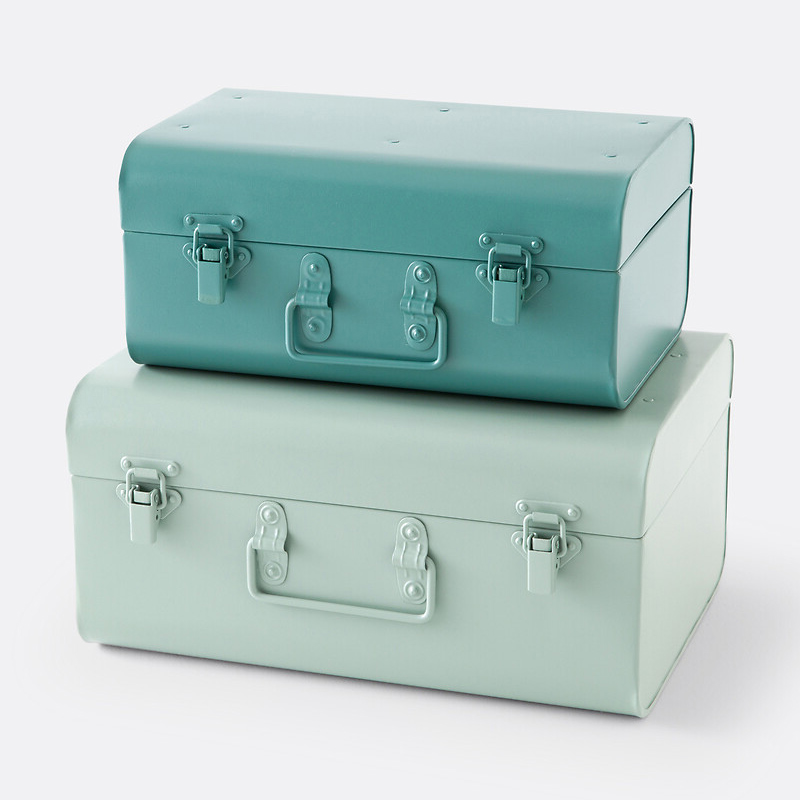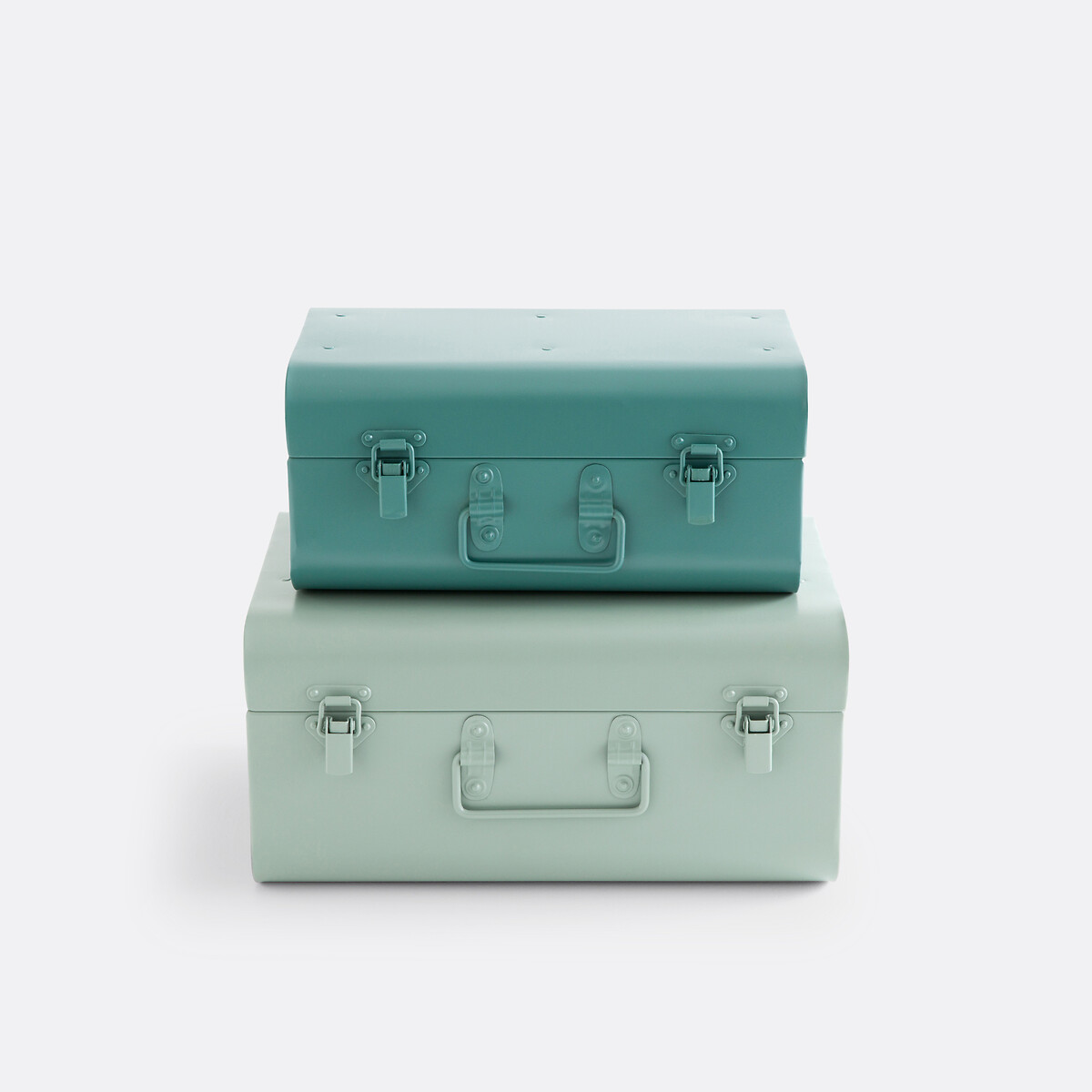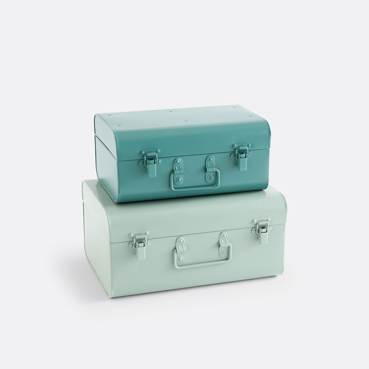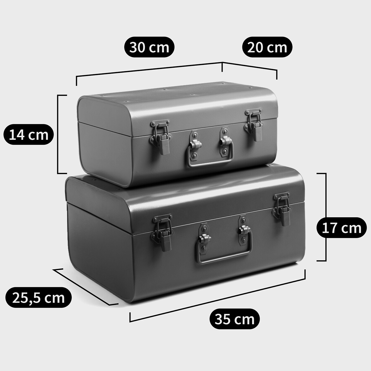 • Комплект из 2 окрашенных эпоксидной краской сундуков из оцинкованного листового железа.