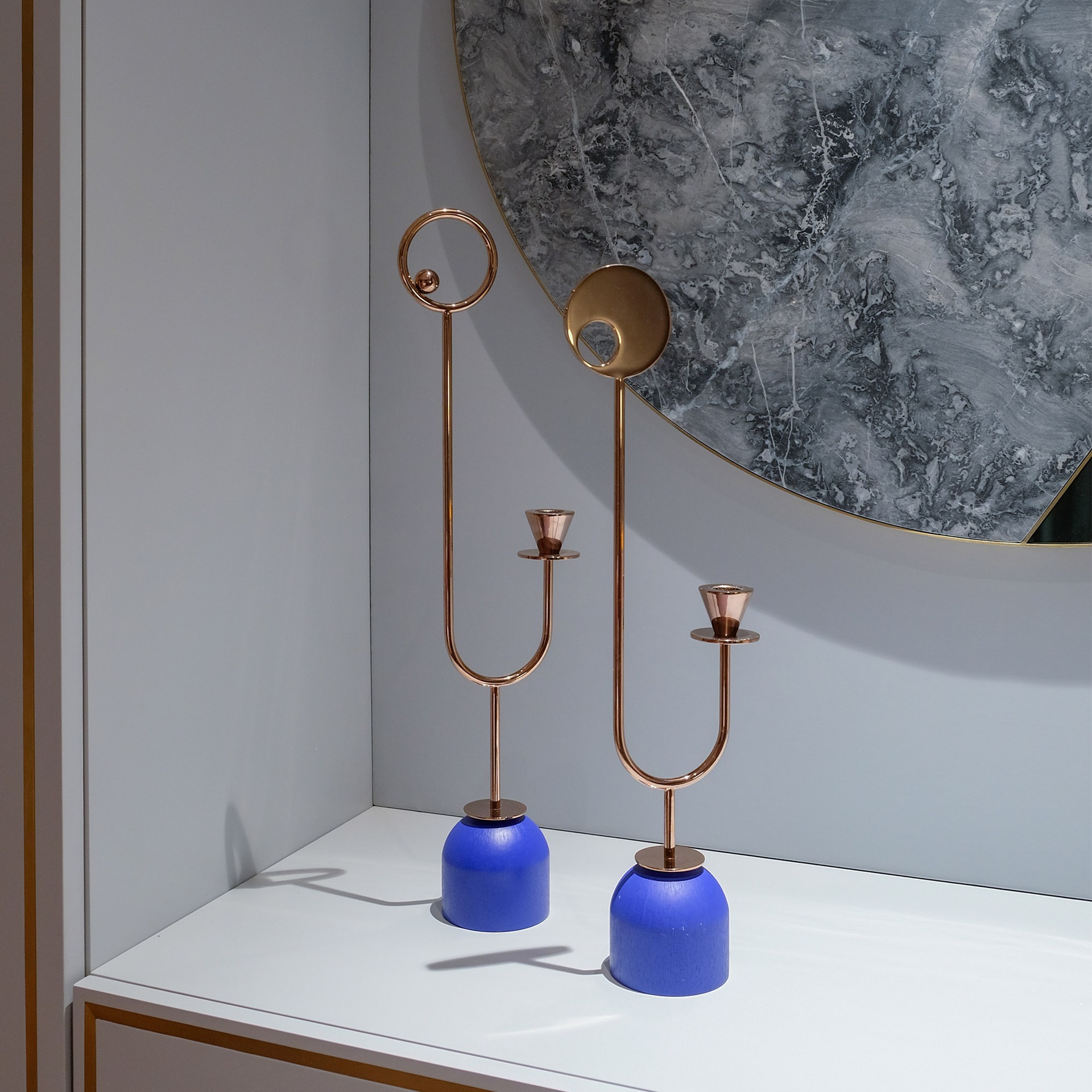 Запросить индивидуальное предложениеКапсульная коллекция Paris-Memphis черпает вдохновение и отдает дань уважения Мемфисскому движению, основанному в 1981 году Этторе Соттсассом. Изысканная серия из девяти подсвечников отличается юмором благодаря своим неструктурированным формам и асимметричным линиям. В то время как изделия № 3 и № 4 и их яркий синий цвет индиго обращаются к ярким цветам поп-арта, остальная часть коллекции, в которой преобладают пастельные тона и нежные оттенки шампанского, меди и розоватой меди, больше напоминают геометрическую элегантность ар-деко.