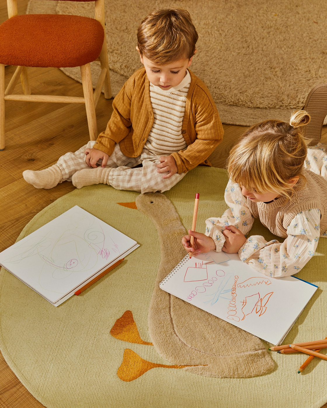 Ковер Milu зеленый хлопок с рисунком гуся Ø 100 см