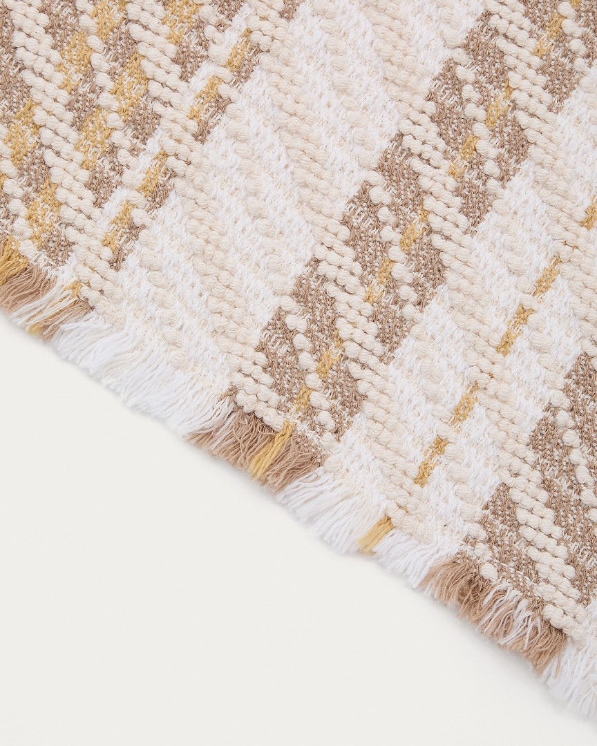 Коврик для ванной Milda из 100% хлопка белого и бежевого цвета с бахромой 50 x 70 см