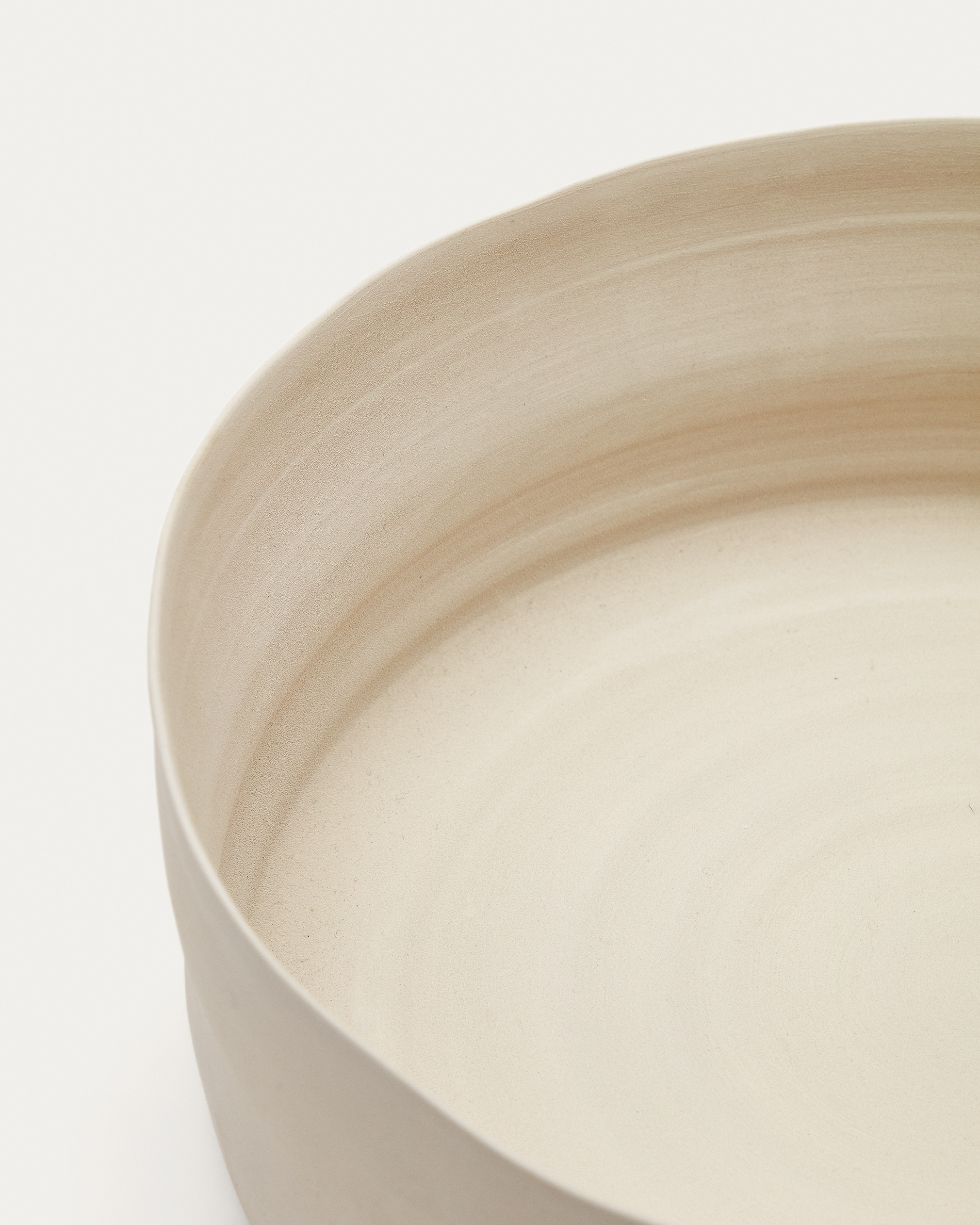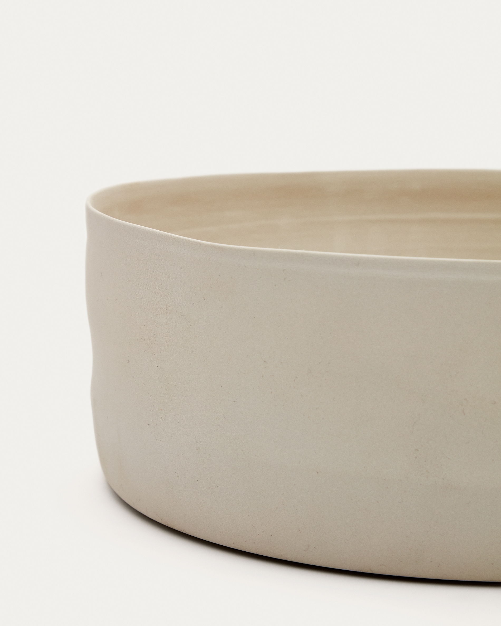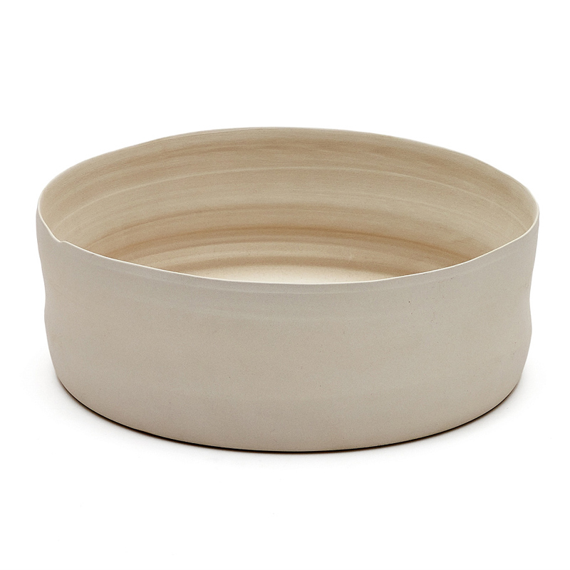 Поднос имеет круглую форму, полностью сделан из керамики белого цвета. Неоднородный цвет в сочетании неидеальной фактурой и формой добавляют изделию индивидуальности, что безусловный плюс для сервировки или декора интерьера.