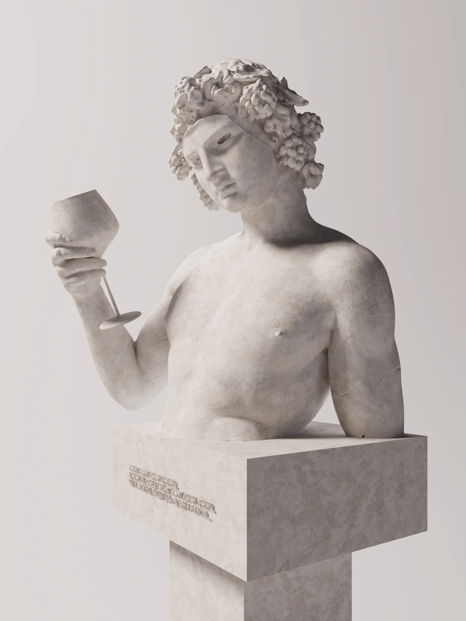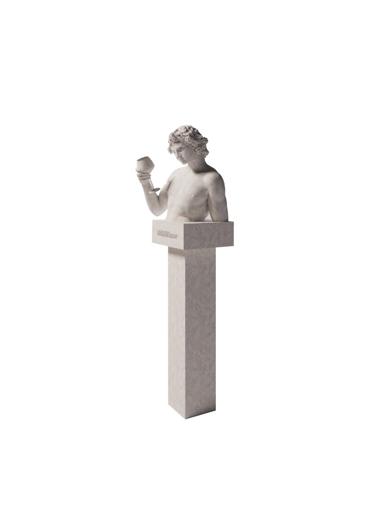 В античной эпохе Древней Греции актеров называли "мимос". Этот арт-объект продолжает древнюю традицию, созданный по образу Диониса в момент театрального перевоплощения.