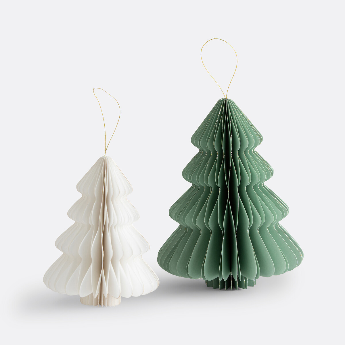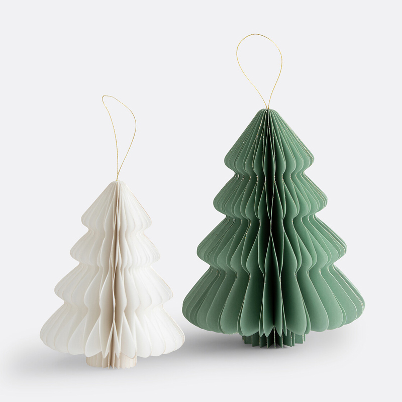 • Набор из 2 складных рождественских елок из бумаги с сертификатом FSC®, которые можно подвешивать или ставить, с блестящей отделкой