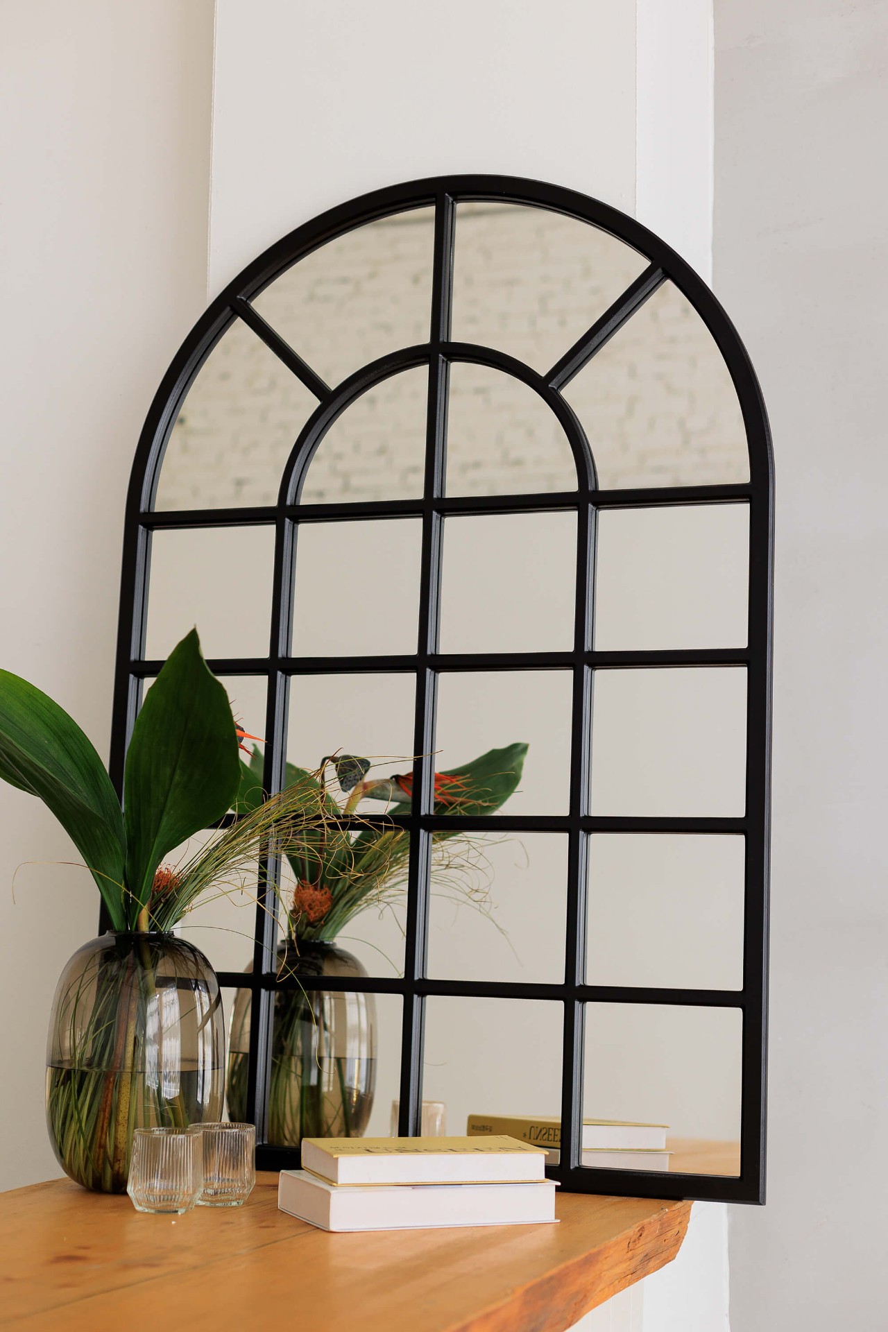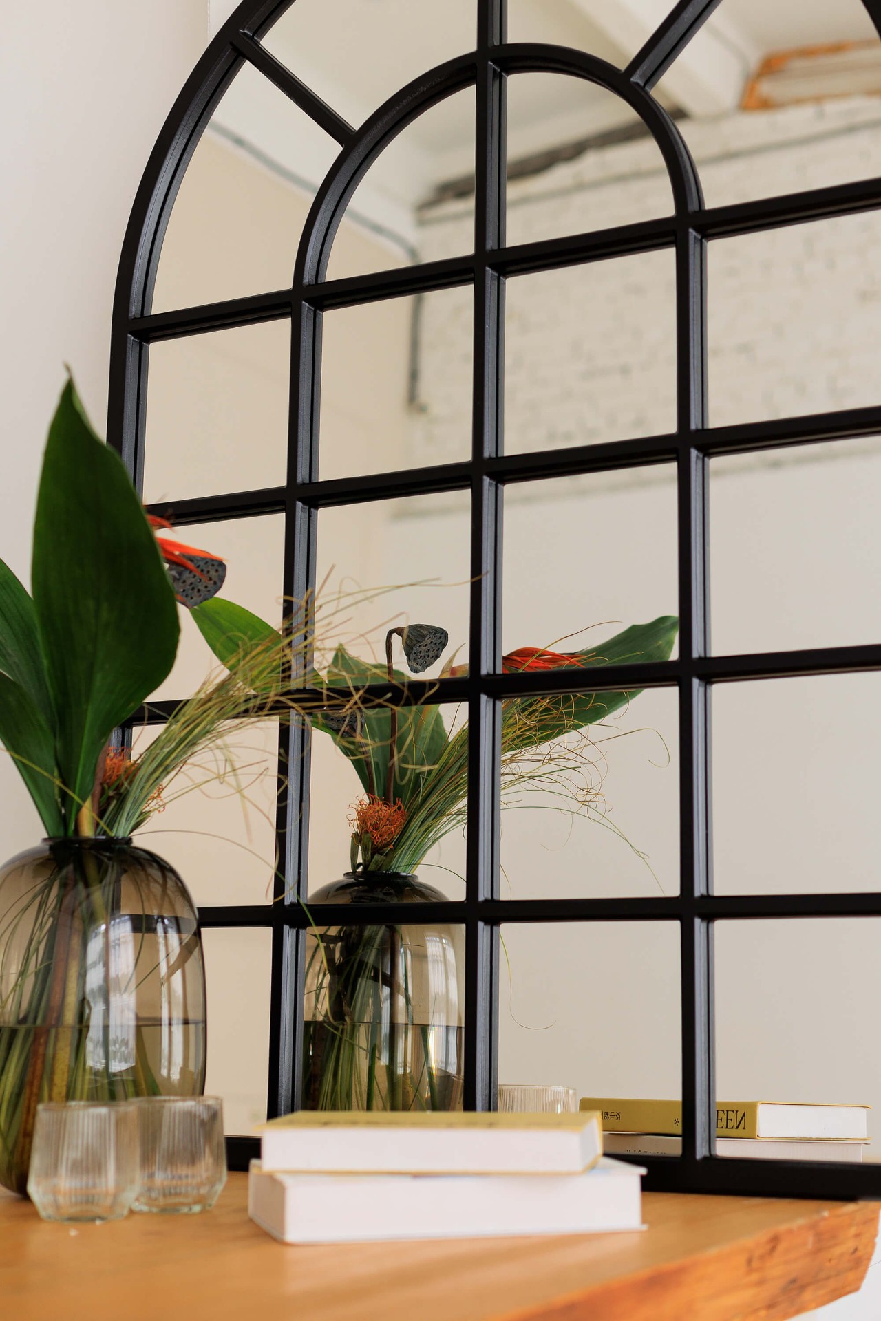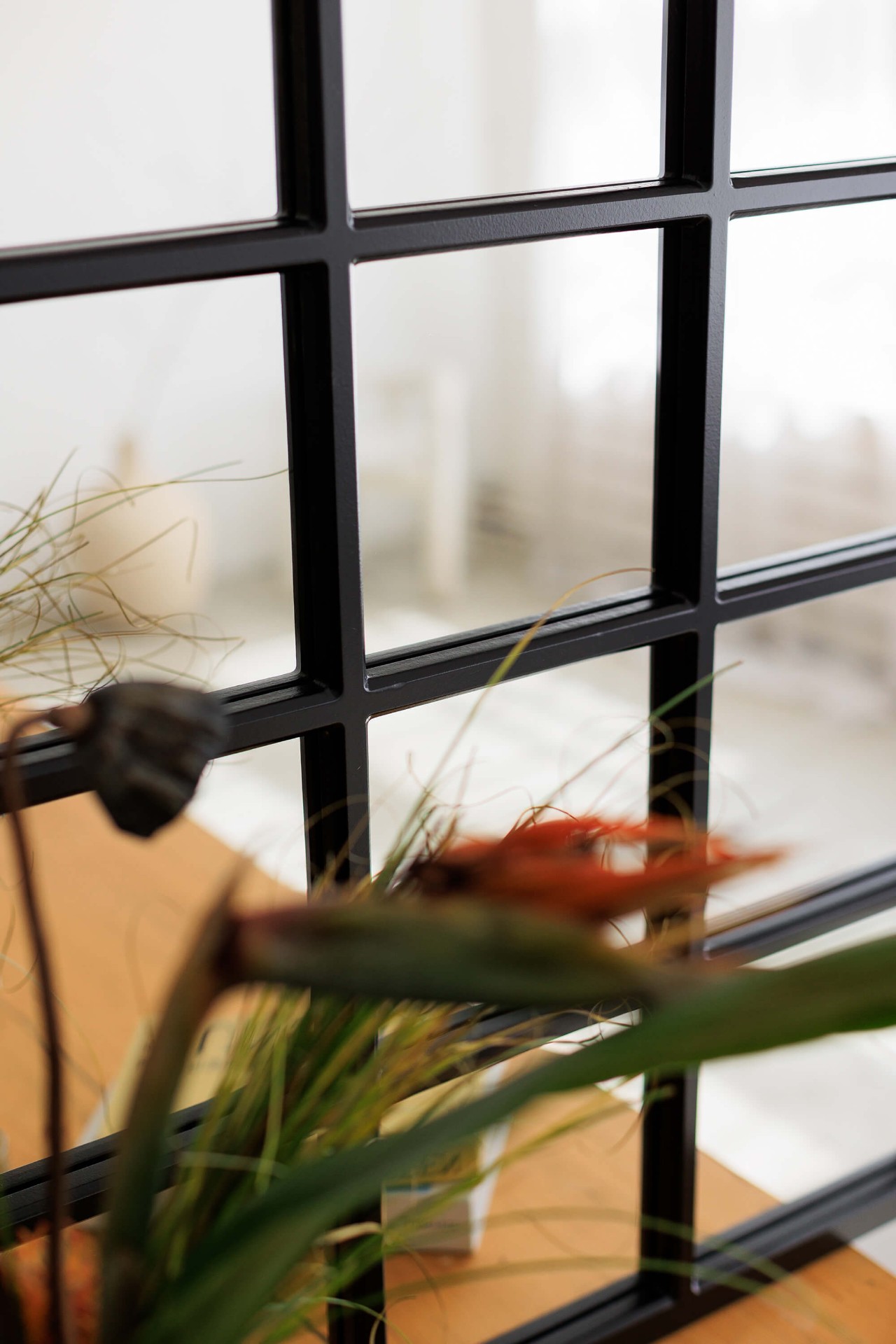Запросить индивидуальное предложениеЗеркало в стиле окна в черном цвете идеально подходит для современных интерьеров, стилей loft, арт-деко, минимализма и хай-тек. Оно отлично сочетается с металлическими деталями, стеклом и другими черными элементами декора, создавая гармоничное и стильное сочетание.