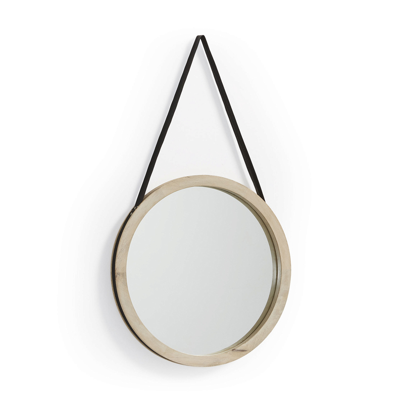 Зеркало Gyda от фабрики La Forma (ex Julia Grup) – дерево манго и оригинальный кожаный подвес.