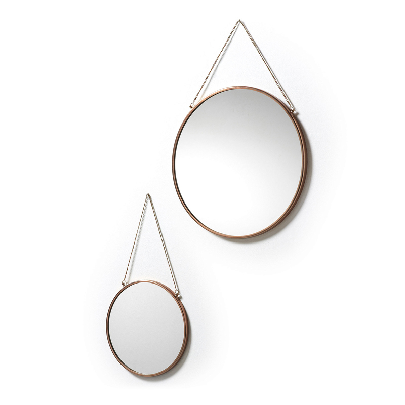 Изделия сразу привлекают внимание. Подвес — несвойственная деталь для современного зеркала, особенно если он представляет собой изящную цепочку. Она не только украшает, но и придает некую винтажность, что несомненно выделяет этот предмет интерьера. Безусловно, эти зеркала остановят на себе взгляд любого гостя.