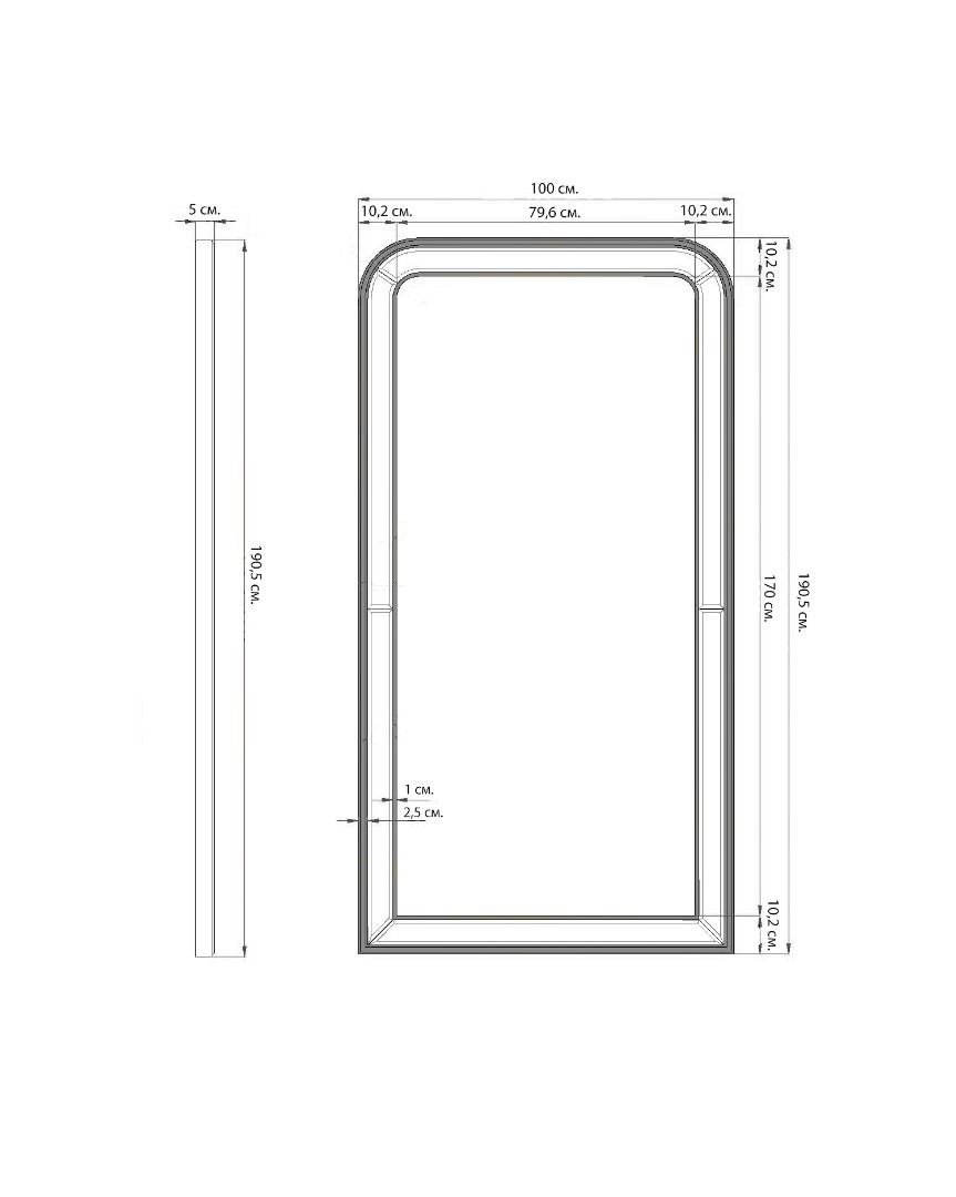 Размеры зеркала: 190 см. х 100 см. х 5 см.