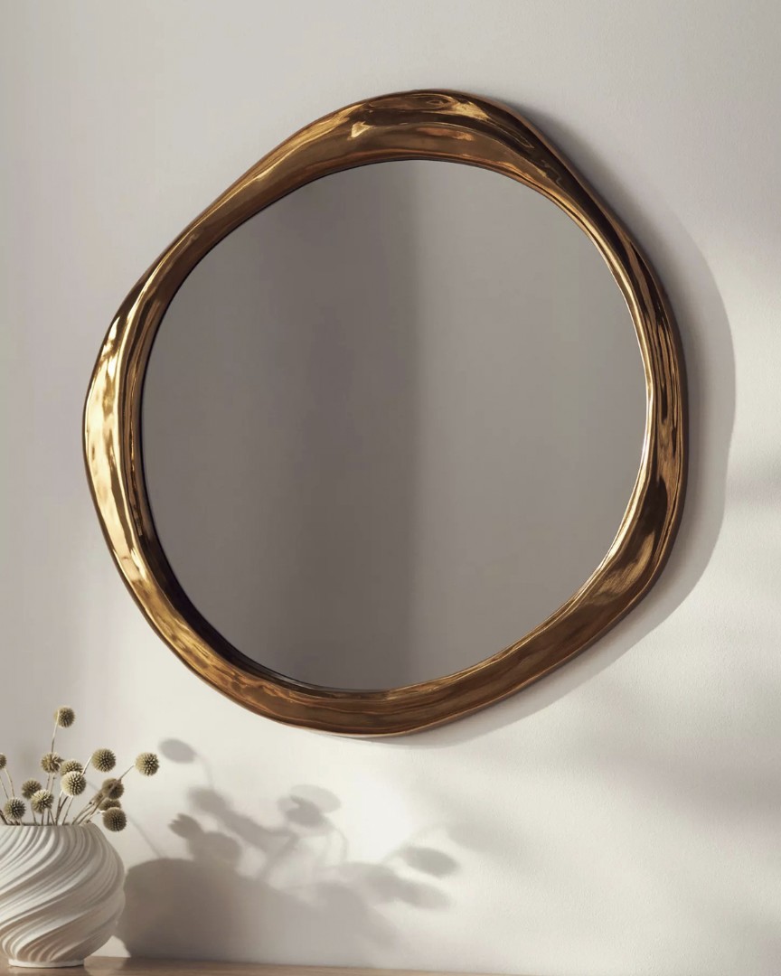 Запросить индивидуальное предложениеЗеркало в золотой раме “Арагон” – это изящная золотая рама с легким оттенком античности, которая придает зеркалу изысканный вид, делая его настоящим украшением вашего дома. В отличие от большинства стандартных зеркал, “Арагон” имеет необычную форму, которая придает ему неповторимость и уникальность. Благодаря асимметрии, зеркало может эффектно вписаться в любое современное пространство, добавляя ему особый стиль. Благодаря этому, оно станет идеальным дополнением для вашей спальни, гостевой комнаты или коридора.
