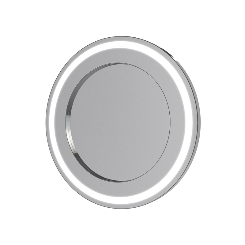 Запросить индивидуальное предложениеКруглое зеркало с подсветкой по периметру из авторской коллекции украсит вашу ванную комнату или гардероб, основание выполнено из МДФ и рама из полированной стали. Данную модель можно заказать в других отделках.