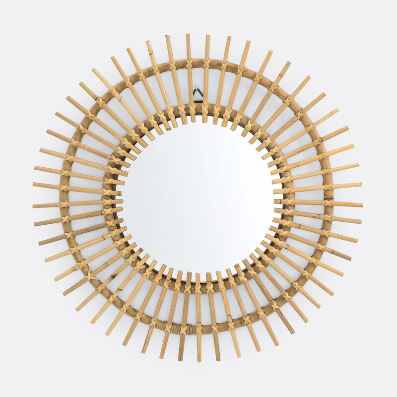 Запросить индивидуальное предложениеЗеркало из ротанга в форме солнца Nogu. Зеркало в декоративном богемном стиле, которое естественным образом сочетается с мебелью из ротанга или дерева. Его дизайн в форме солнца добавит теплую нотку вашему интерьеру.
