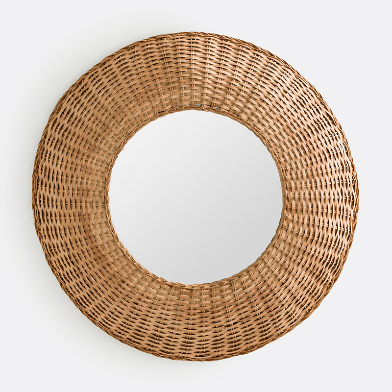 Запросить индивидуальное предложениеКруглое, выпуклое и обшитое ротангом зеркало Naria наполнит ваш домой красотой природы и создаст уютную и аутентичную атмосферу. Смело сочетайте его с другими зеркалами или рамами для создания стены, которая в полной мере отражает вашу индивидуальность.