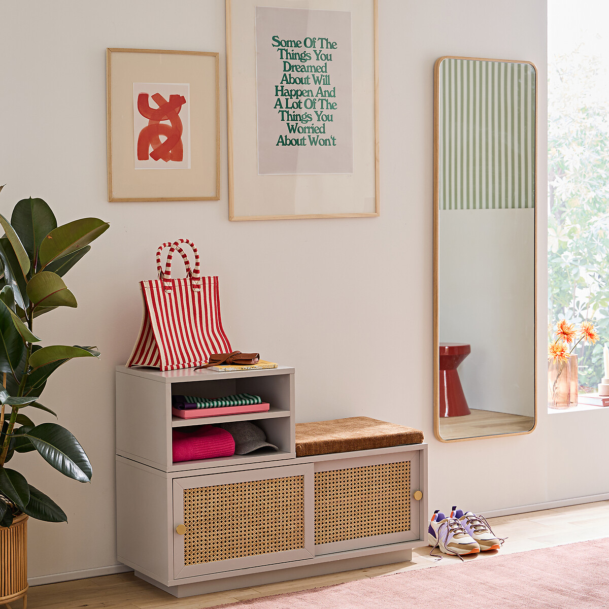 Шпонированное дубом прямоугольное зеркало 50x150 см Iodus единый размер бежевый