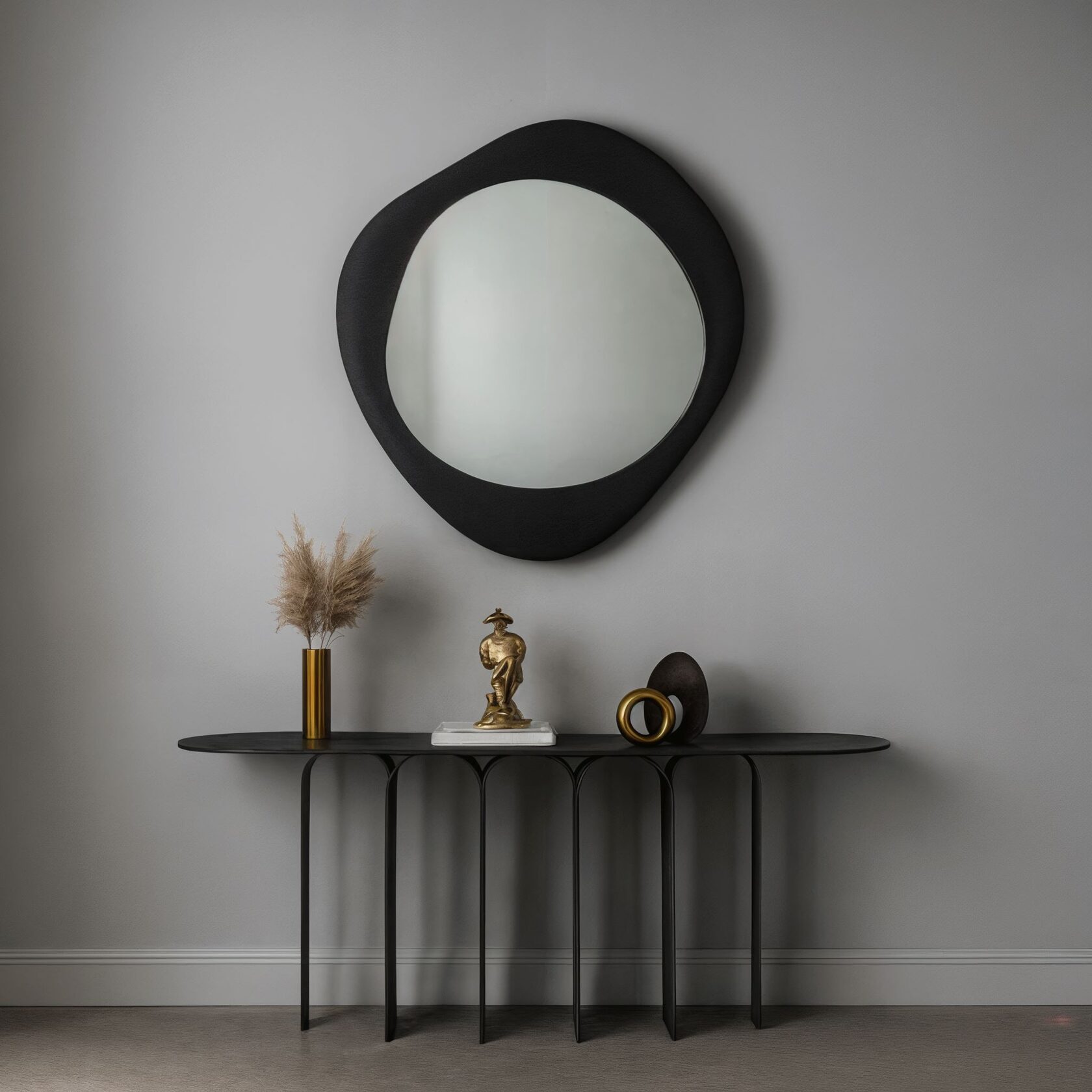 Запросить индивидуальное предложениеСкульптурное зеркало с органичными формами и матовой графитовой рамой. Это тихий, но выразительный акцент пространства, собирает композицию, добавляет тактильности и подчёркивает современную архитектуру пространства. Живой асимметричный силуэт дарит ощущение движения и природной пластики, а матовая графитовая рама добавляет интерьеру благородный контраст и визуальную глубину.
