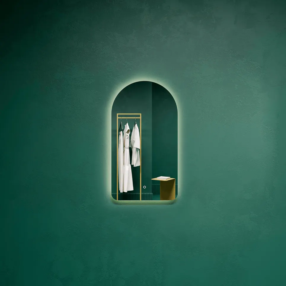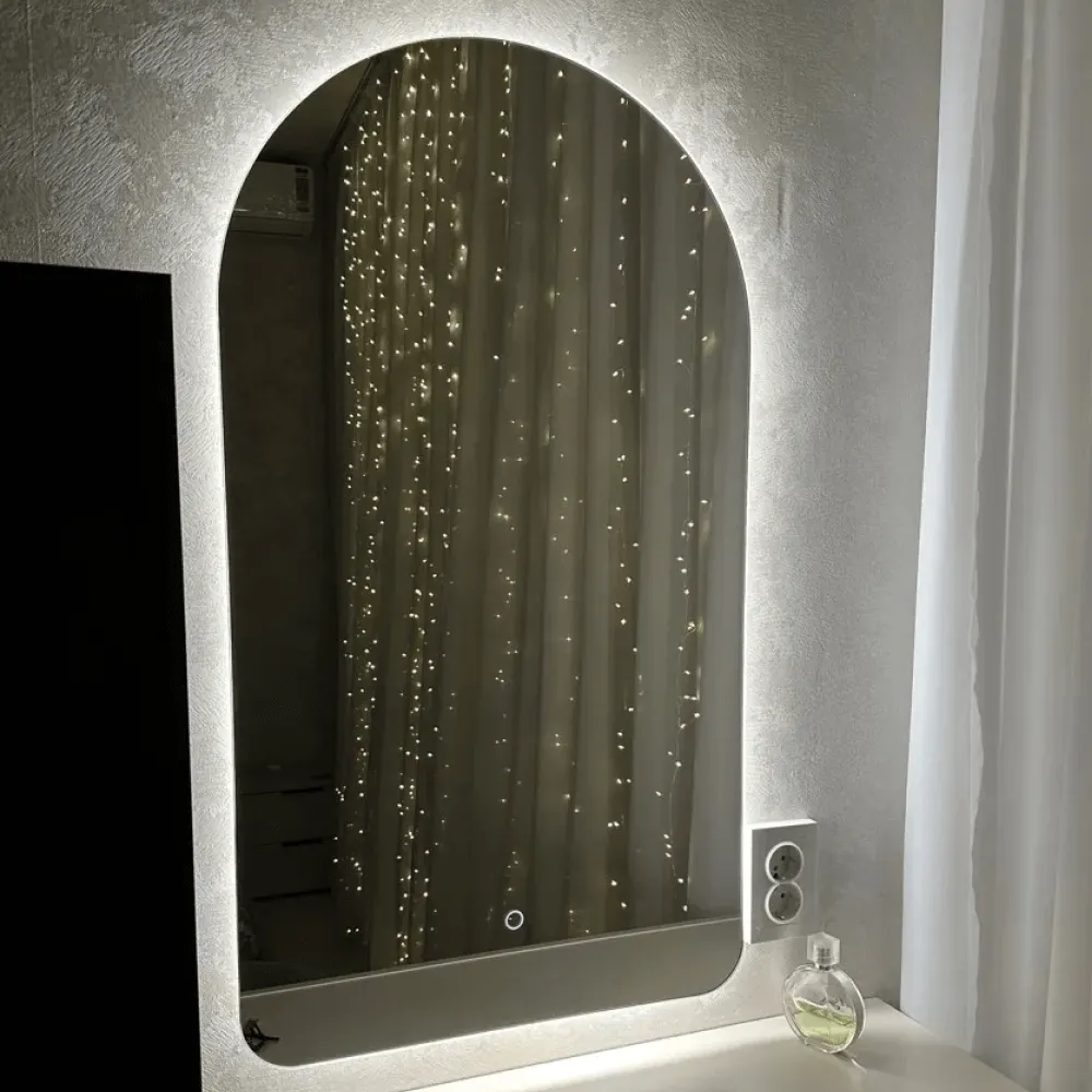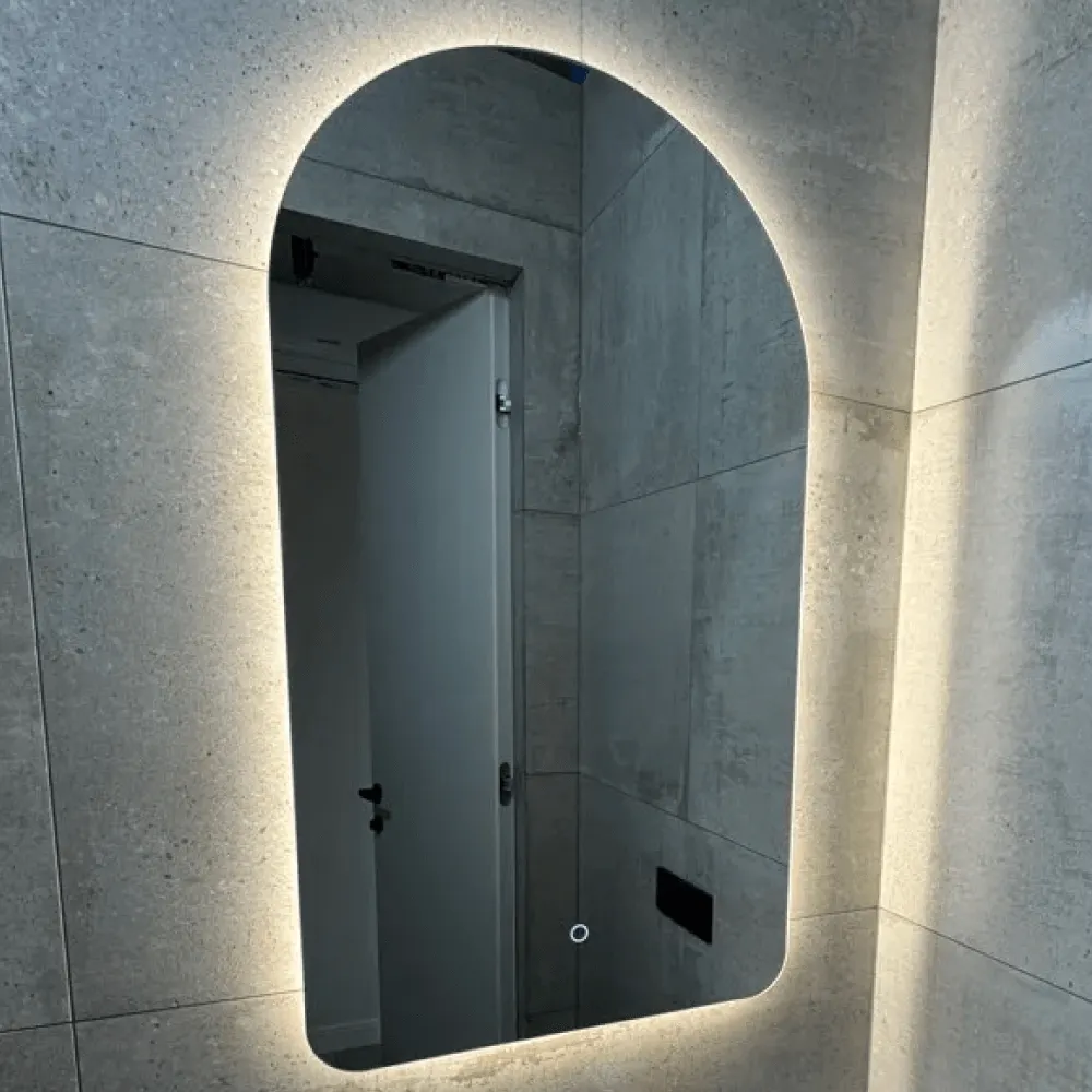 Запросить индивидуальное предложениеARKELO NF LED S — современное арочное зеркало без рамки с контурной тыльной холодной подсветкой, созданное с применением передовых технологий. Оно объединяет практичность и элегантность: подсветка улучшает видимость и создаёт атмосферное освещение, а минималистичная форма и безрамная конструкция делают зеркало стильным акцентом, который визуально расширяет пространство и подчёркивает индивидуальность интерьера. Эта модель станет идеальным выбором для тех, кто хочет совместить комфорт, функциональность и эстетическую привлекательность в любом помещении.