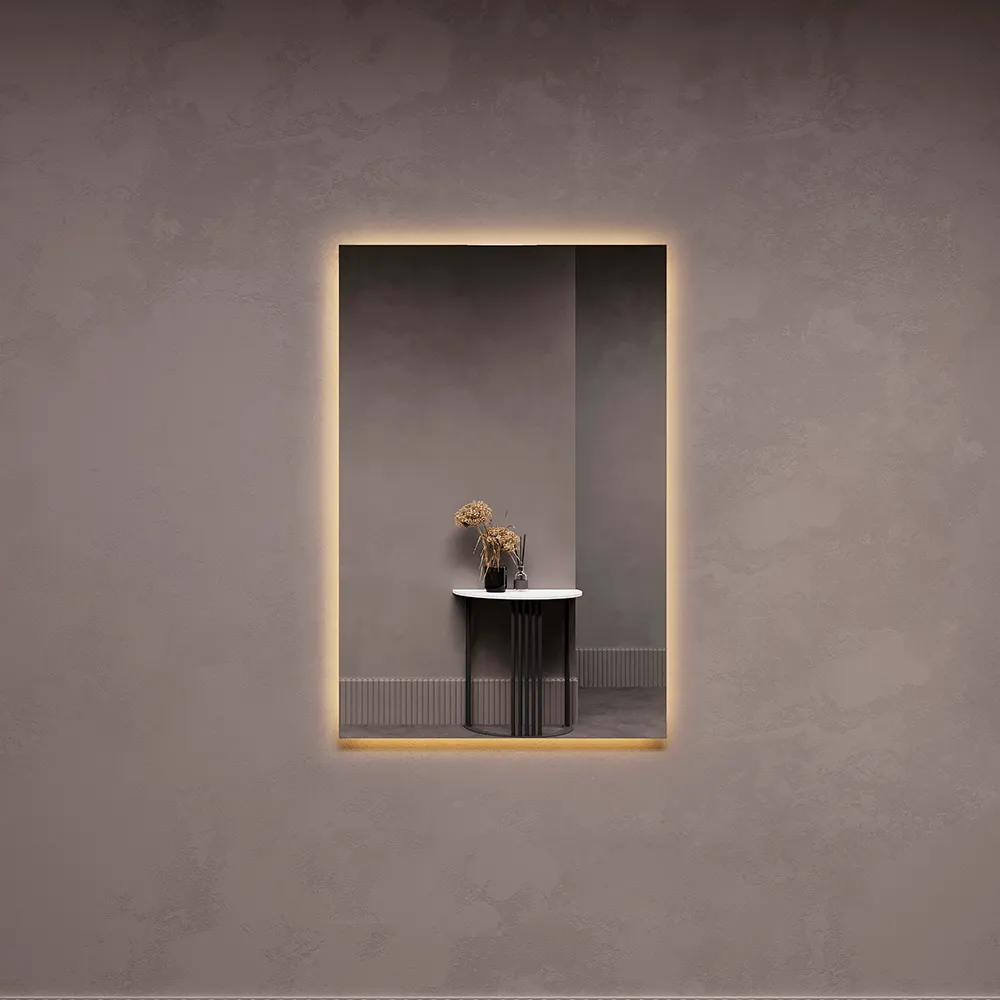 Запросить индивидуальное предложениеБезрамное зеркало прямоугольной формы с контурной тыльной тёплой подсветкой станет стильным и выразительным акцентом вашего интерьера. Мягкий, уютный свет подсветки создаёт атмосферу комфорта и визуально расширяет пространство, а тщательная проработка каждой детали и высокое качество материалов обеспечивают долговечность и безупречное отражение.