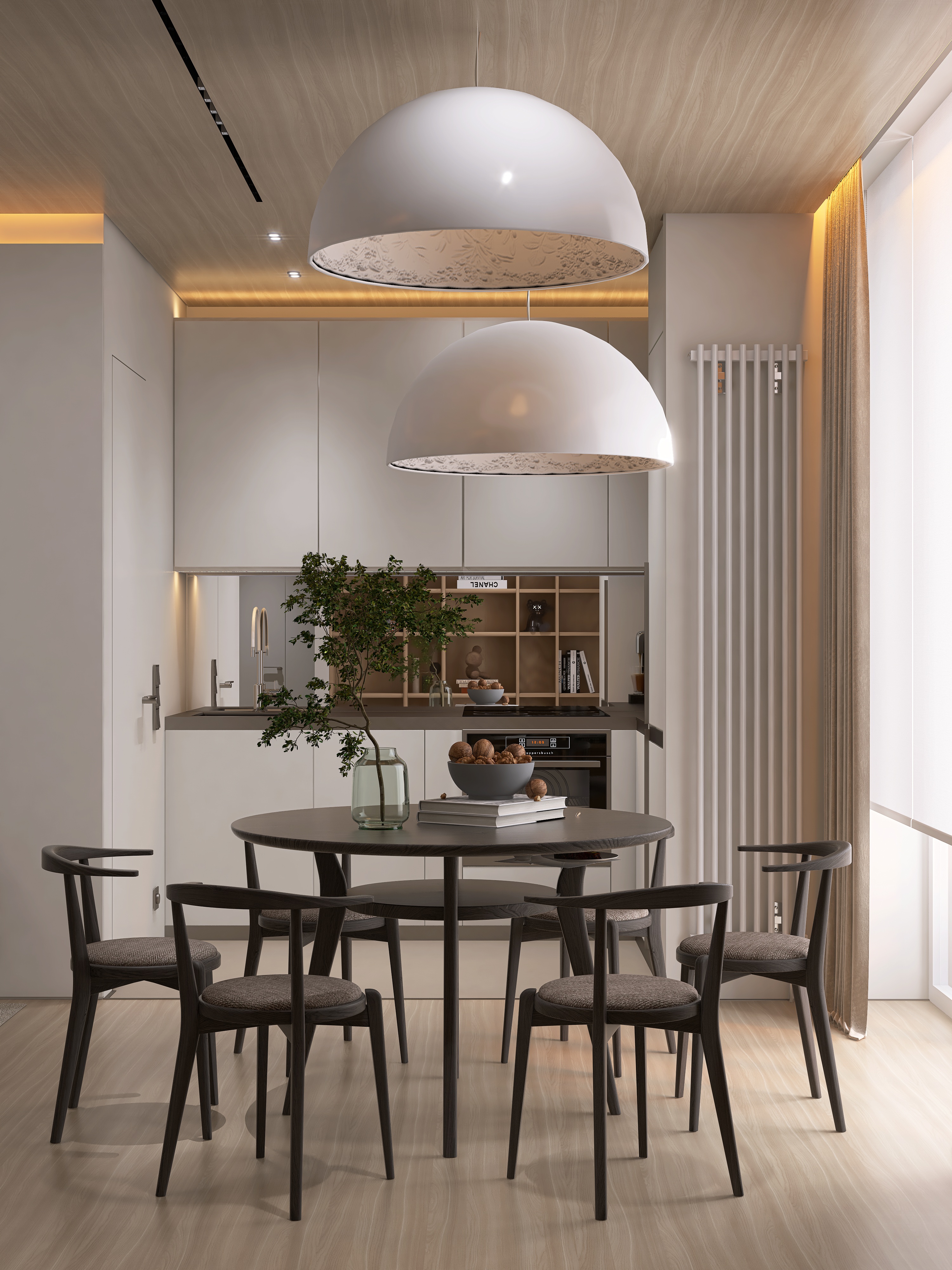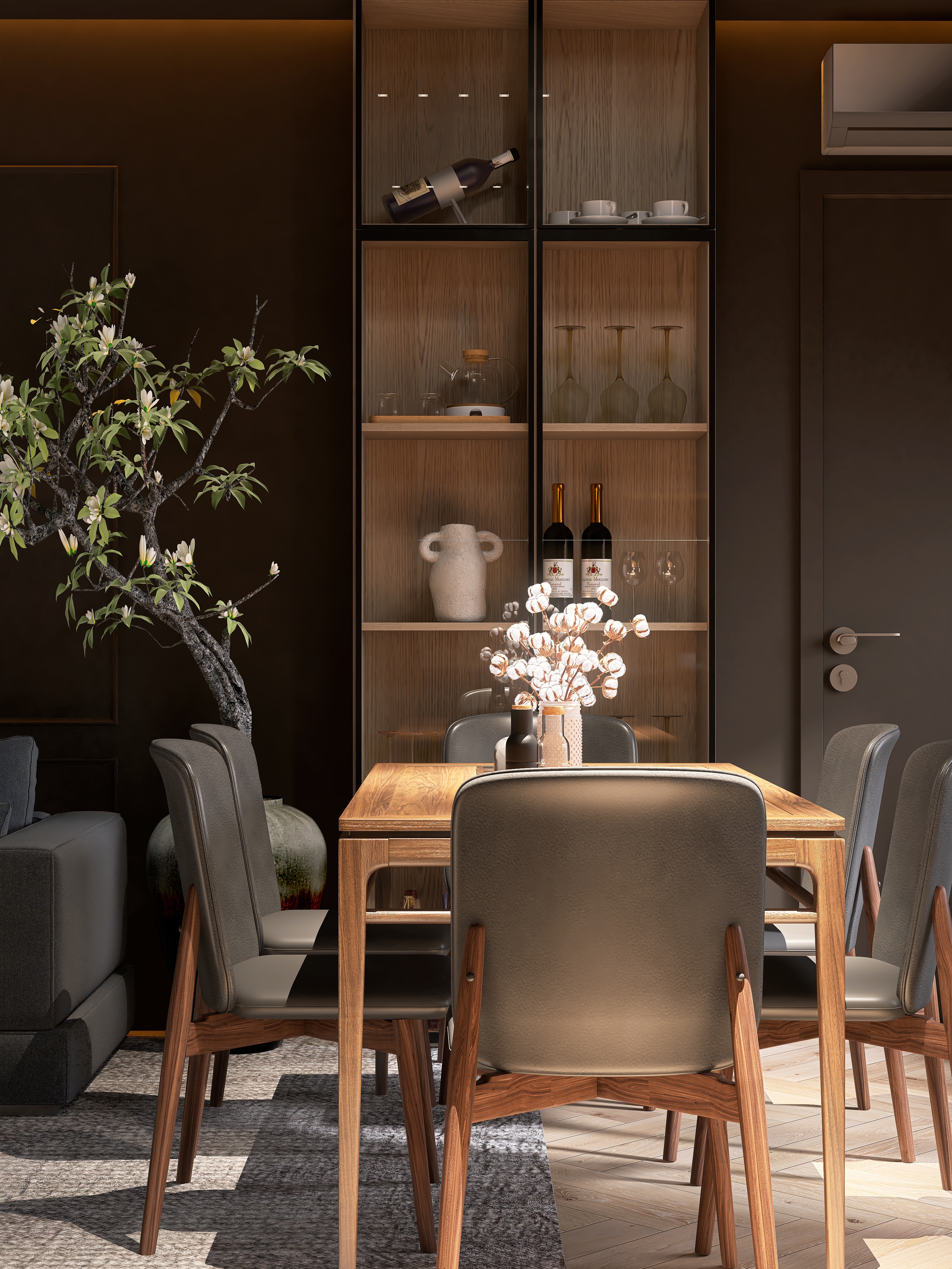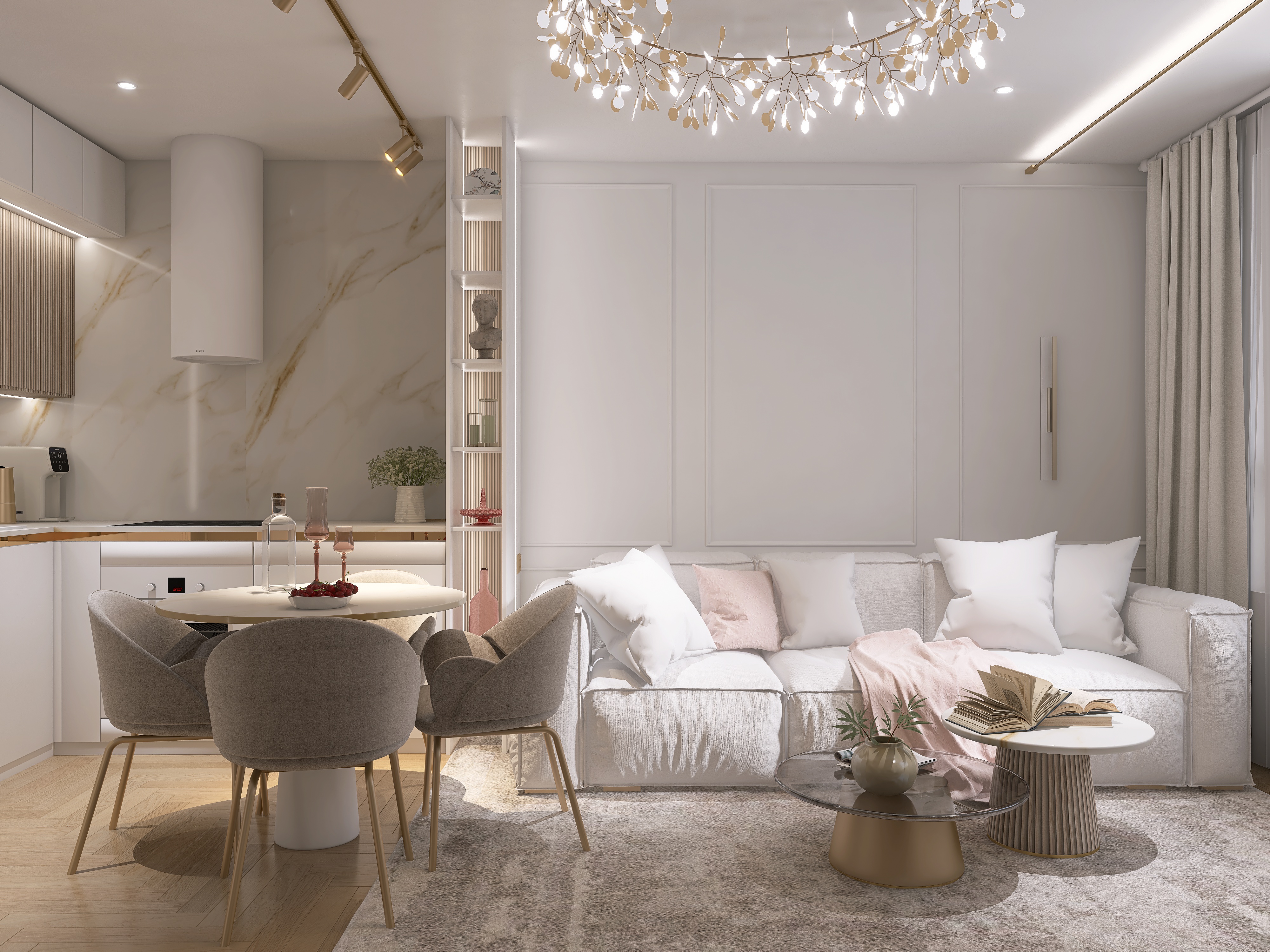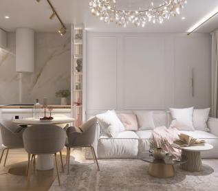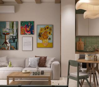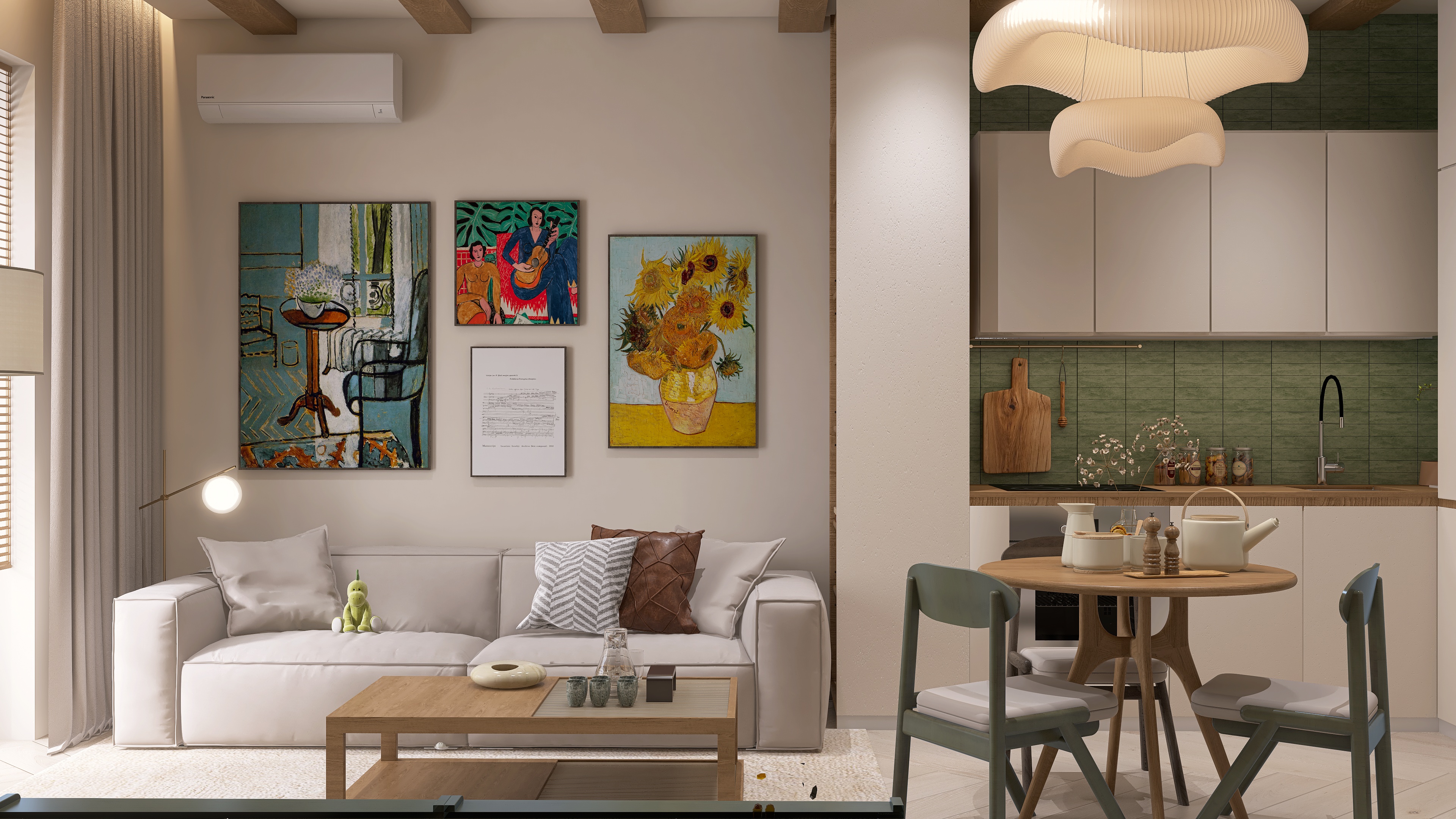 Образец продуманного contemporary дизайна. Доминирует теплая нейтральная палитра. Пространство дышит, каждый предмет на своем месте. Минимализм 2020-х - функциональный, но теплый.