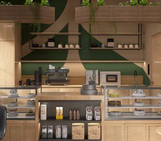Интерьер разработан в качестве основного концепта единого фирменного стиля для сети кофеен "Тортоффский" в стиле минимализм. Более подробно: https://custom-home.pro/portfolio2