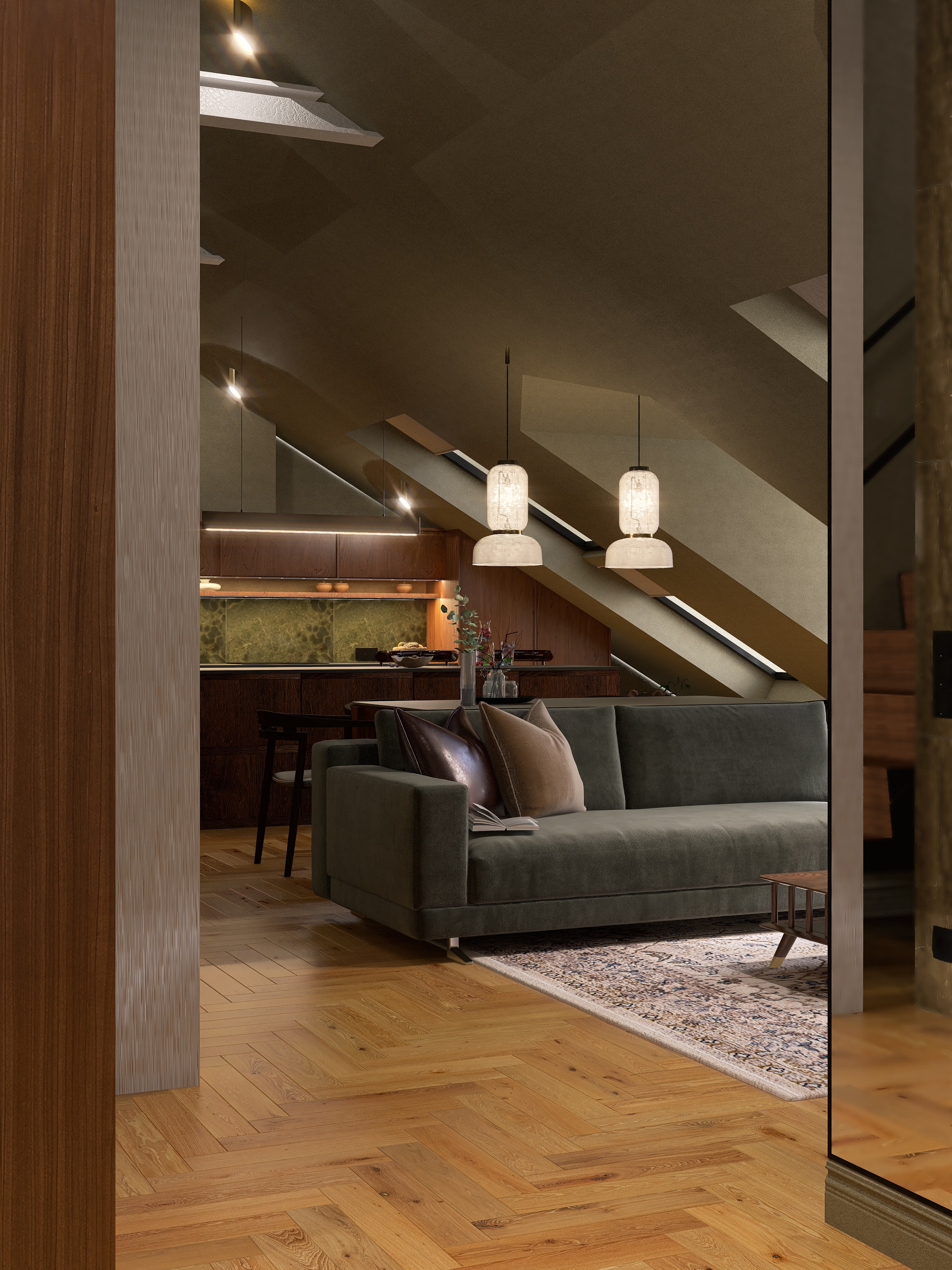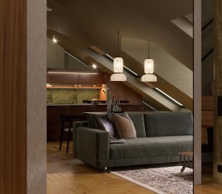 Мансарда в стиле "модерн 60–70-х годов" через гармоничное сочетание функциональности и эстетики. Лицо данного стиля — это послевоенный модернизм.